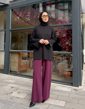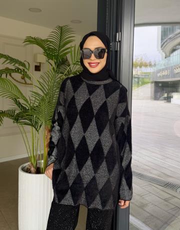 BAKLAVA DESEN TRİKO KAZAK SİYAH