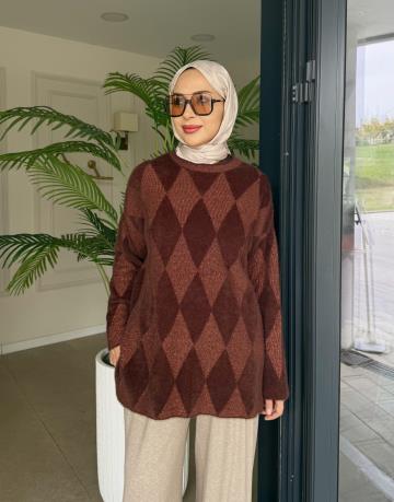 BAKLAVA DESEN TRİKO KAZAK KAHVE