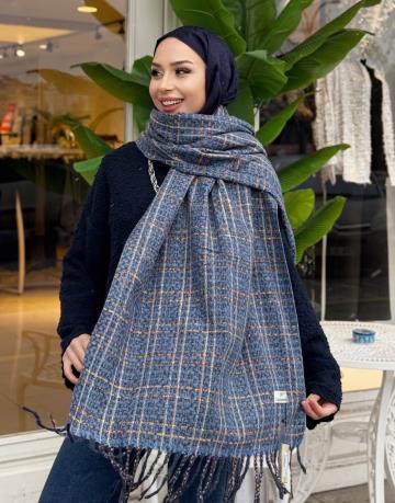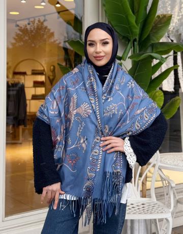 NİLA KAŞMİR OMUZ ŞALI MAVİ