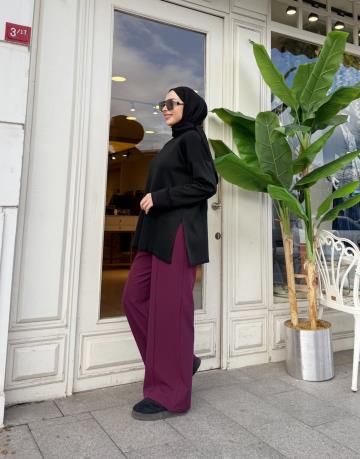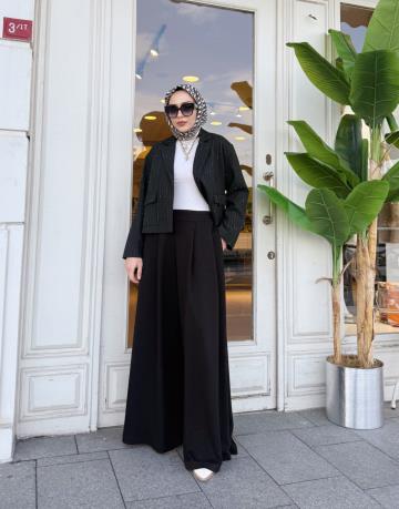 PLİSE DETAY ETEKLİ PANTOLON SİYAH