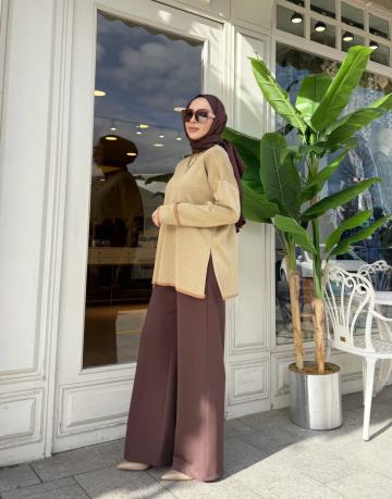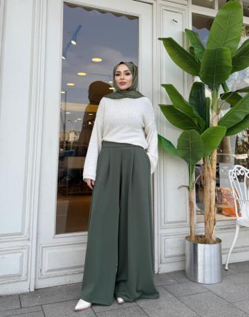 PLİSE DETAY ETEKLİ PANTOLON HAKİ