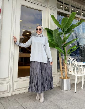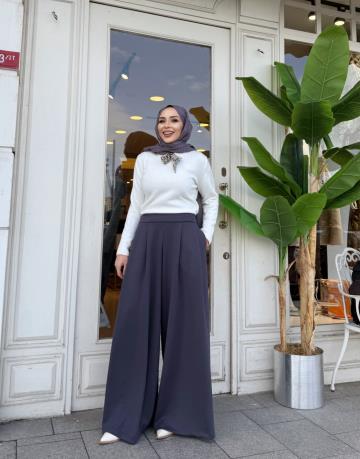 PLİSE DETAY ETEKLİ PANTOLON ANTRASİT