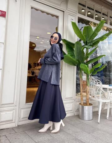 KOL DETAY SİMLİ KAZAK LACİVERT