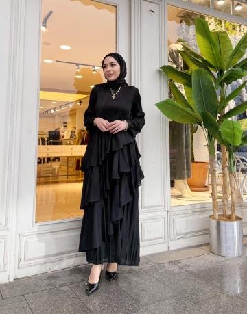 İTHAL ASİMETRİK VOLAN ELBİSE SİYAH