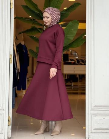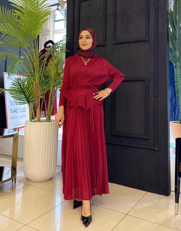 İTHAL PLİSE ETEKLİ TAKIM BORDO