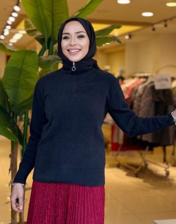 BOĞAZLI ANGORA KISA KAZAK SİYAH