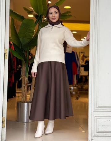 BOĞAZLI ANGORA KISA KAZAK EKRU