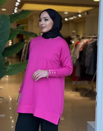 ETEĞİ ÇİZGİLİ DÜĞMELİ TRİKO TUNİK PEMBE