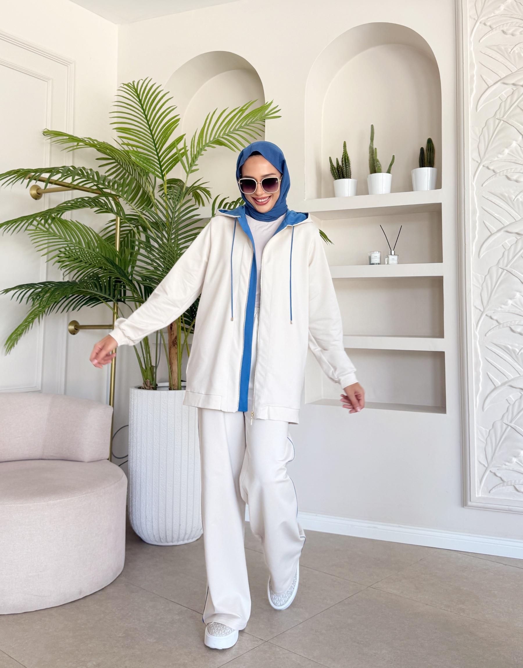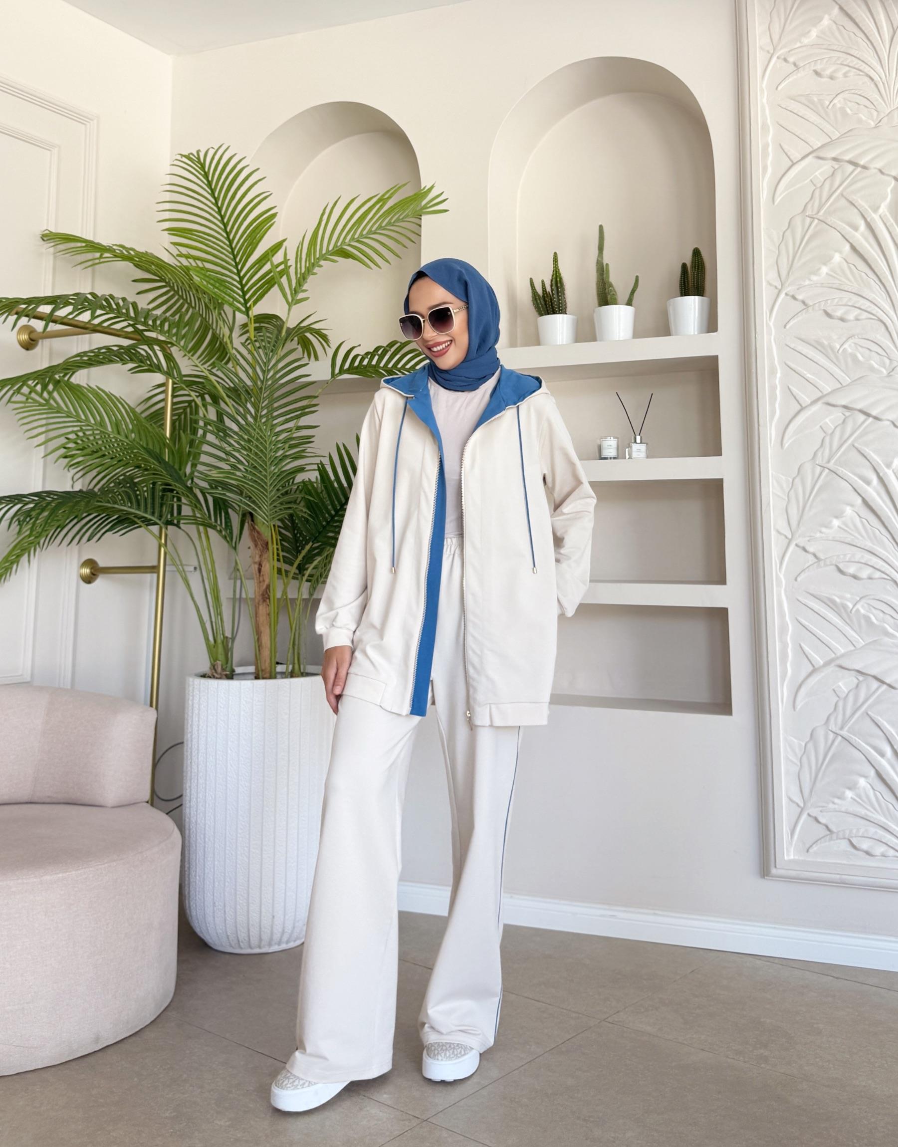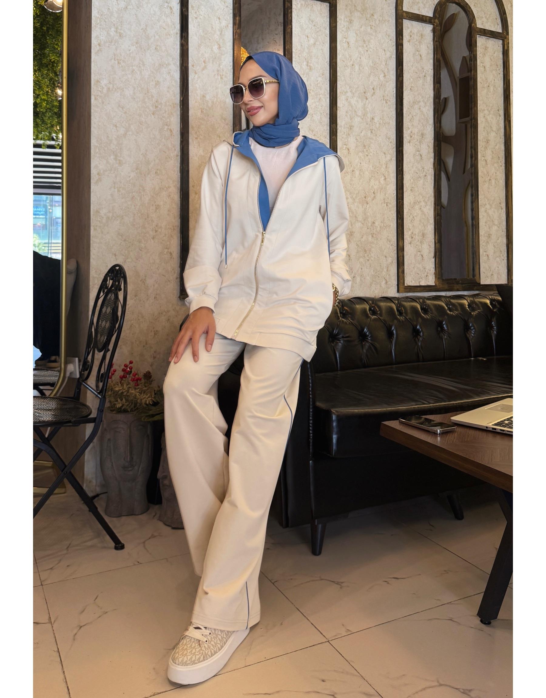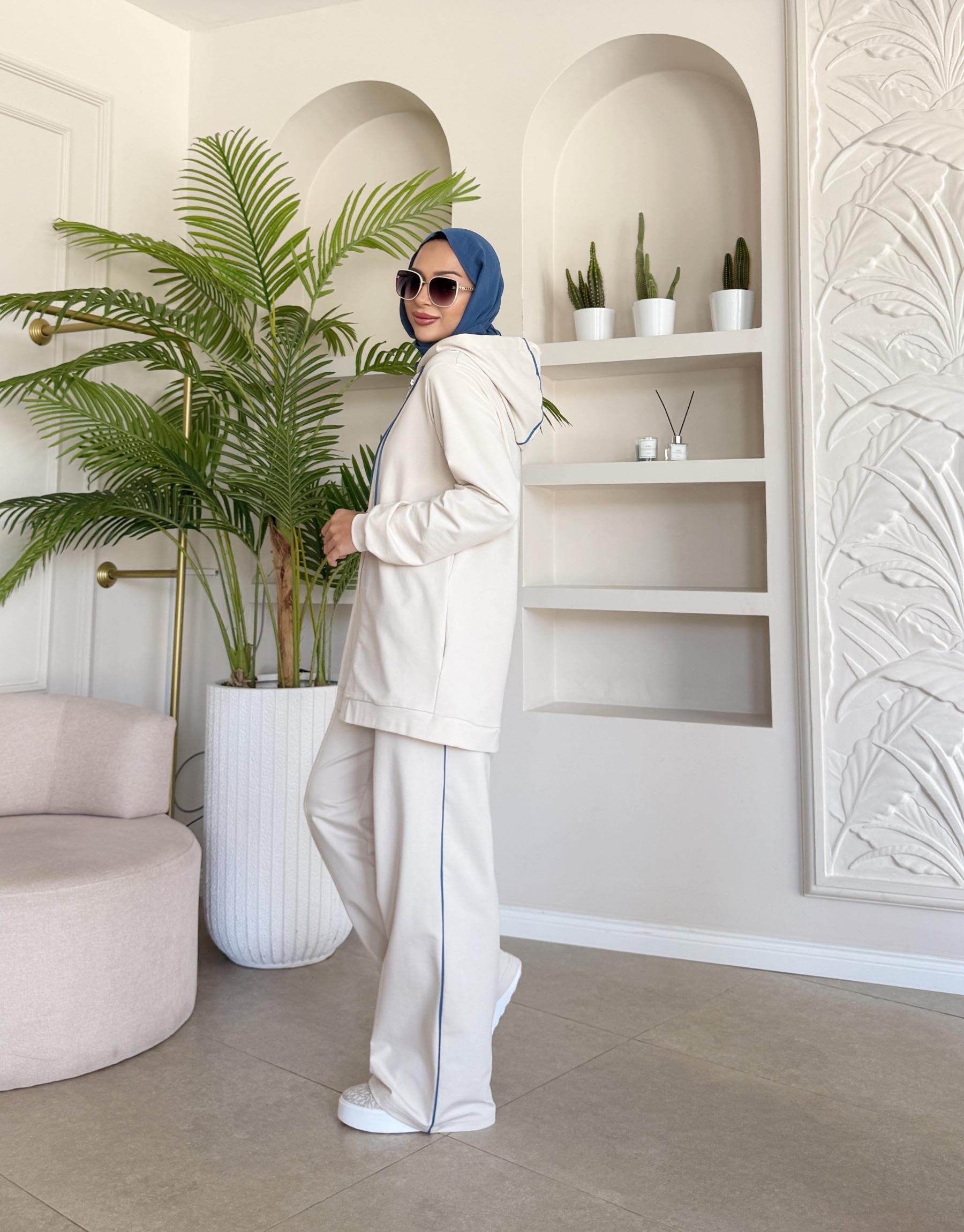 CALİRA BİYE DETAY BOL PAÇA EŞOFMAN ATLI BEJ