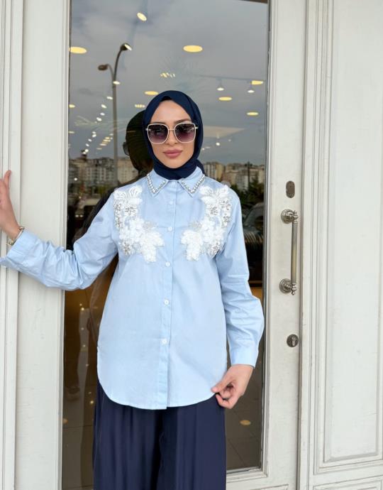 İTHAL YAKASI TAŞLI GÖMLEK MAVİ