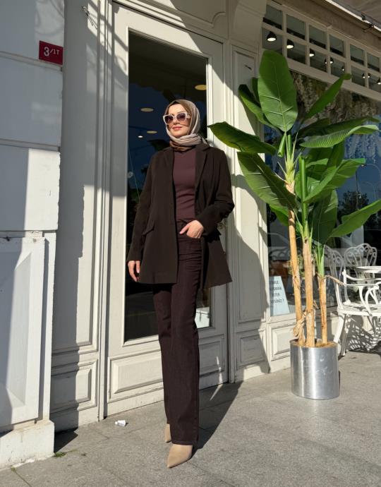 VELOUR DERİ BOL PAÇA PANTOLON KAHVE
