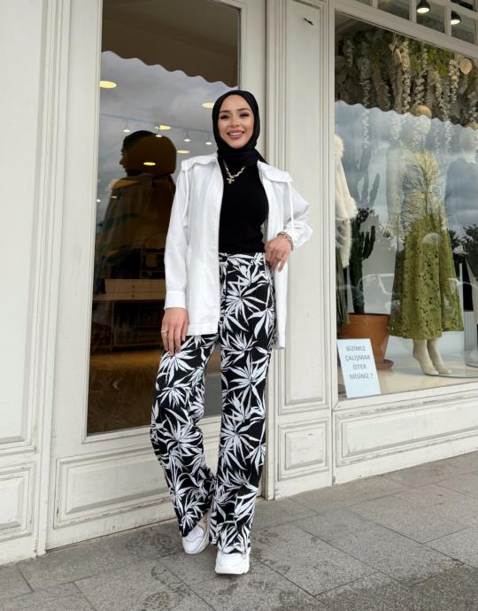 DESENLİ BOL PAÇA PANTOLON SİYAH