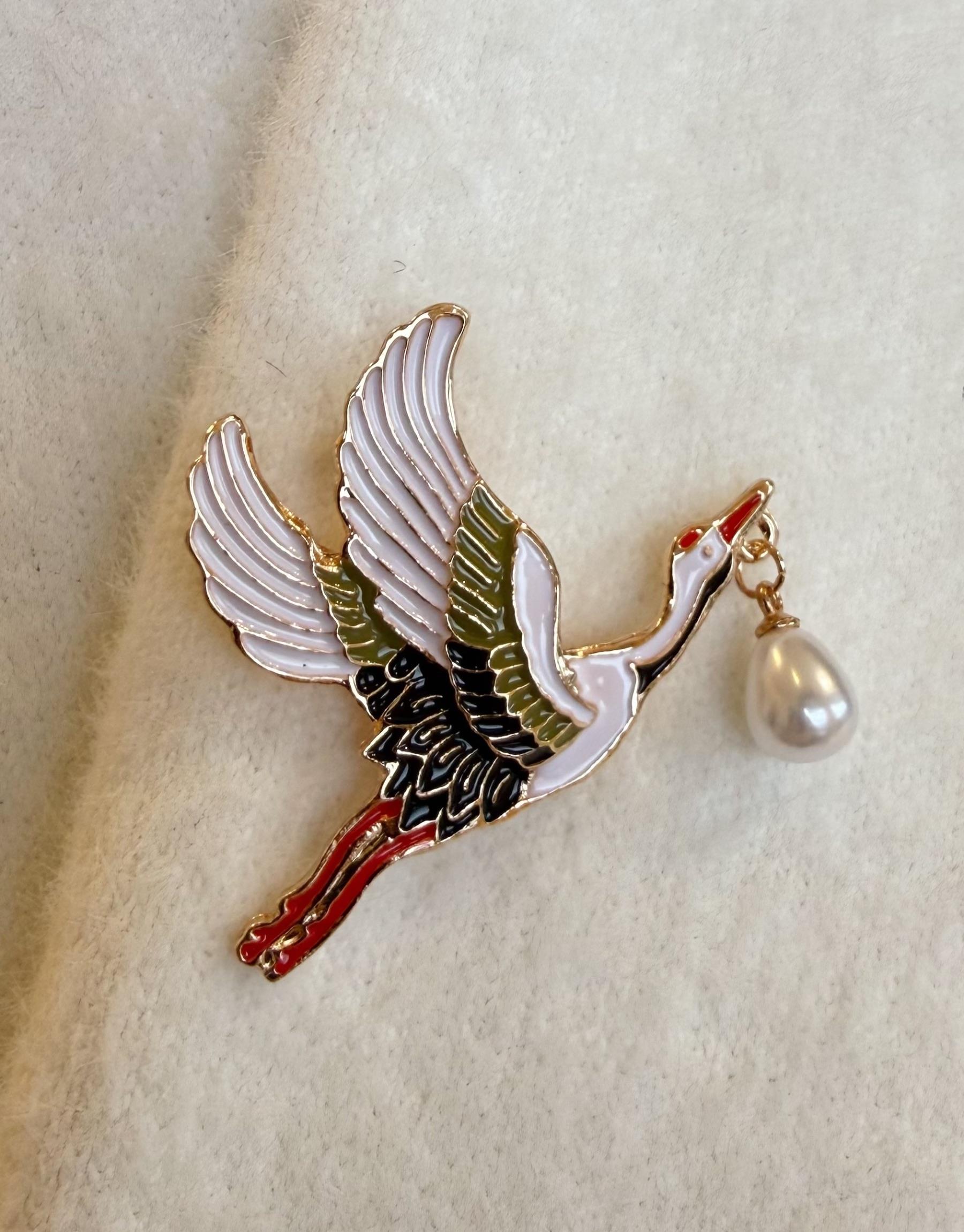 kadin İNCİ DETAY LEYLEK BROŞ