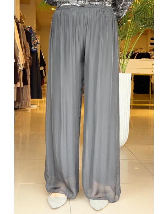 KETEN PANTOLON DÜZ VE ÇİÇEKLİ BEJ