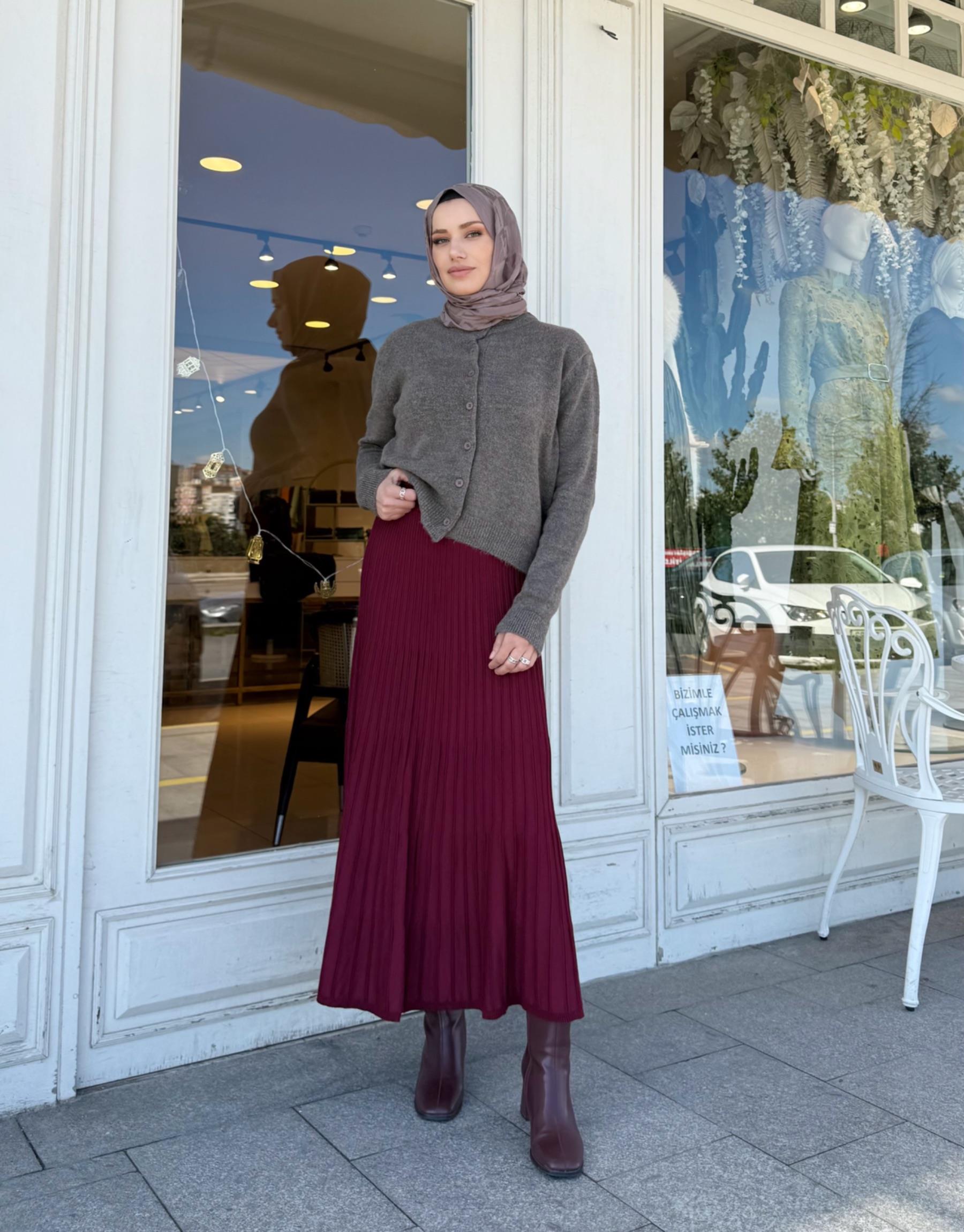 ŞİFON ASİMETRİK KESİM ETEK KAHVERENGİ