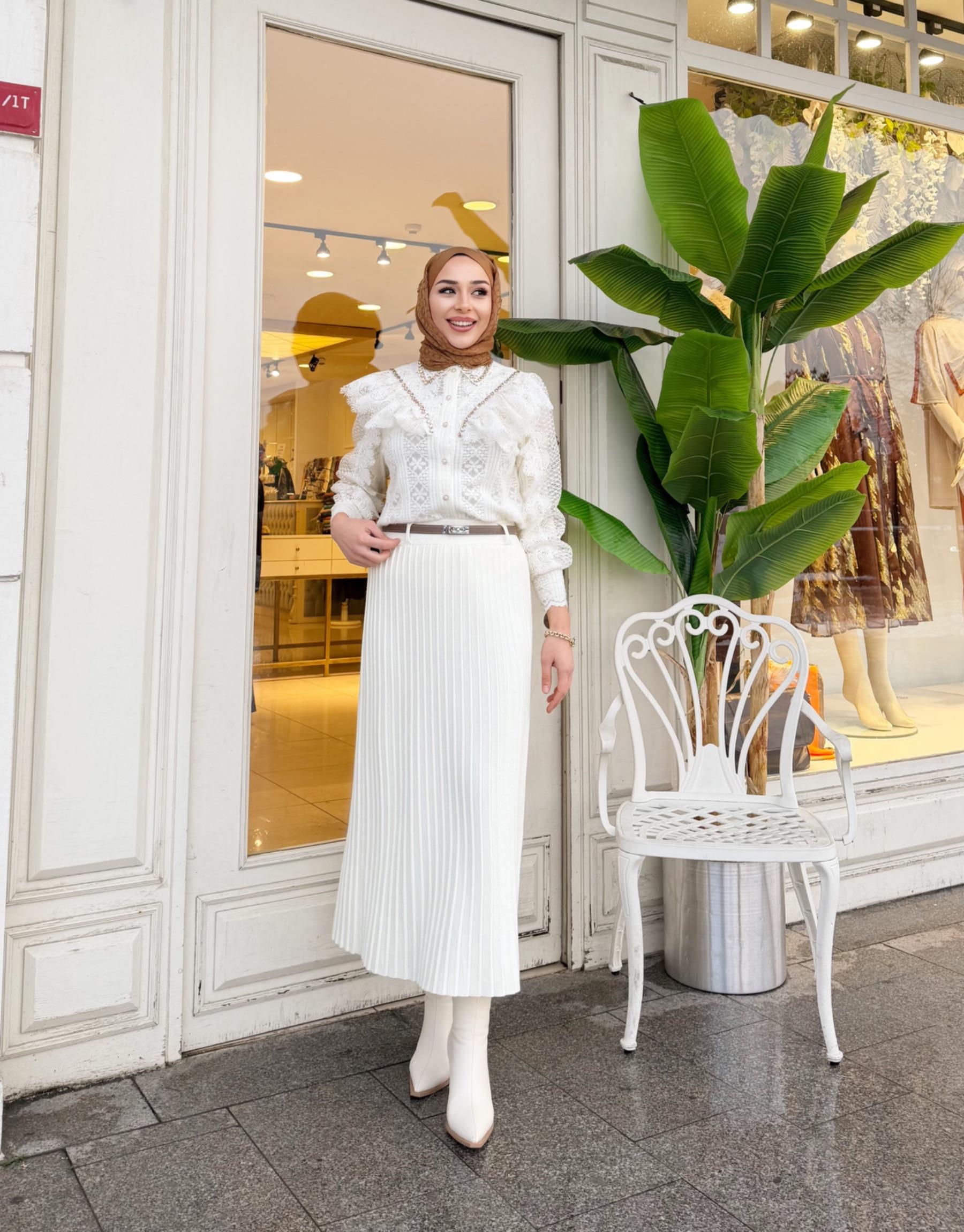 İTHAL PLİSELİ TRİKO ETEK EKRU