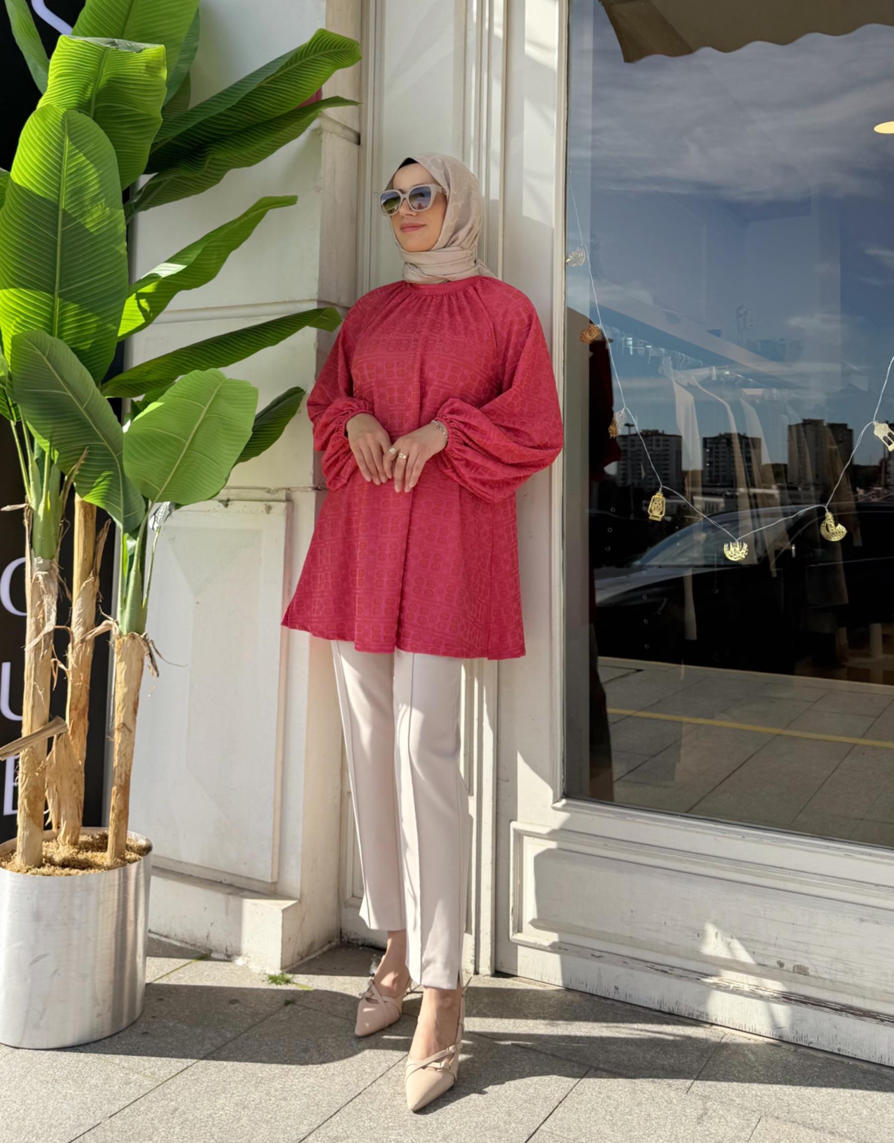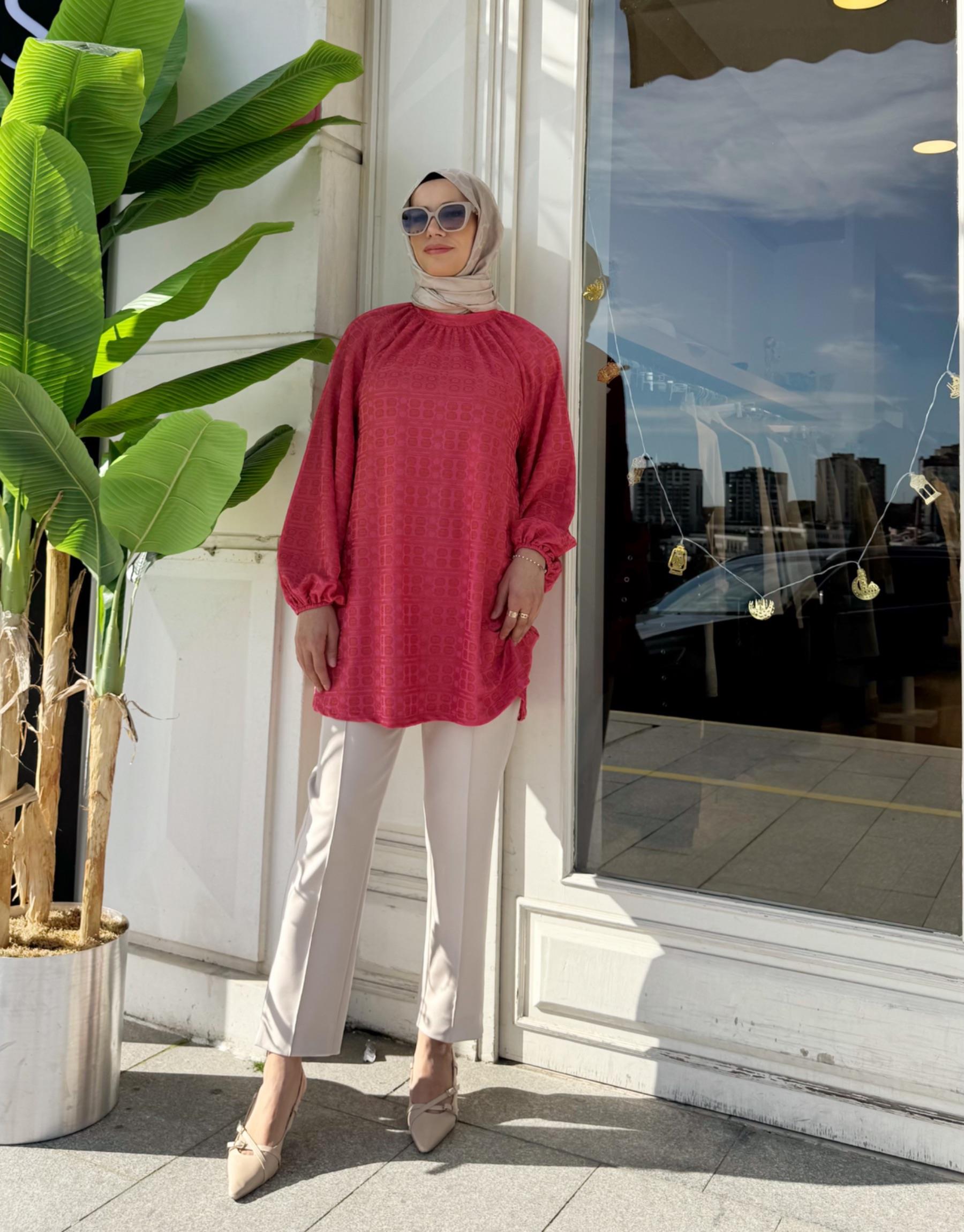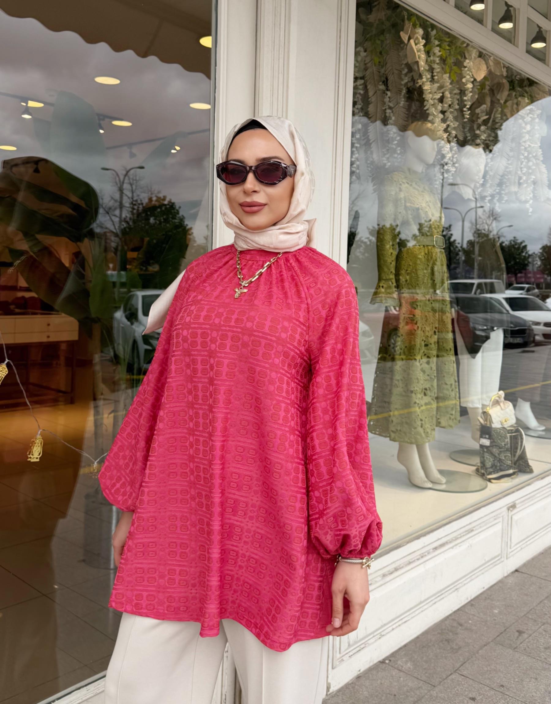 KOLU TAŞLI BASİC TRİKO TUNİK FUŞYA
