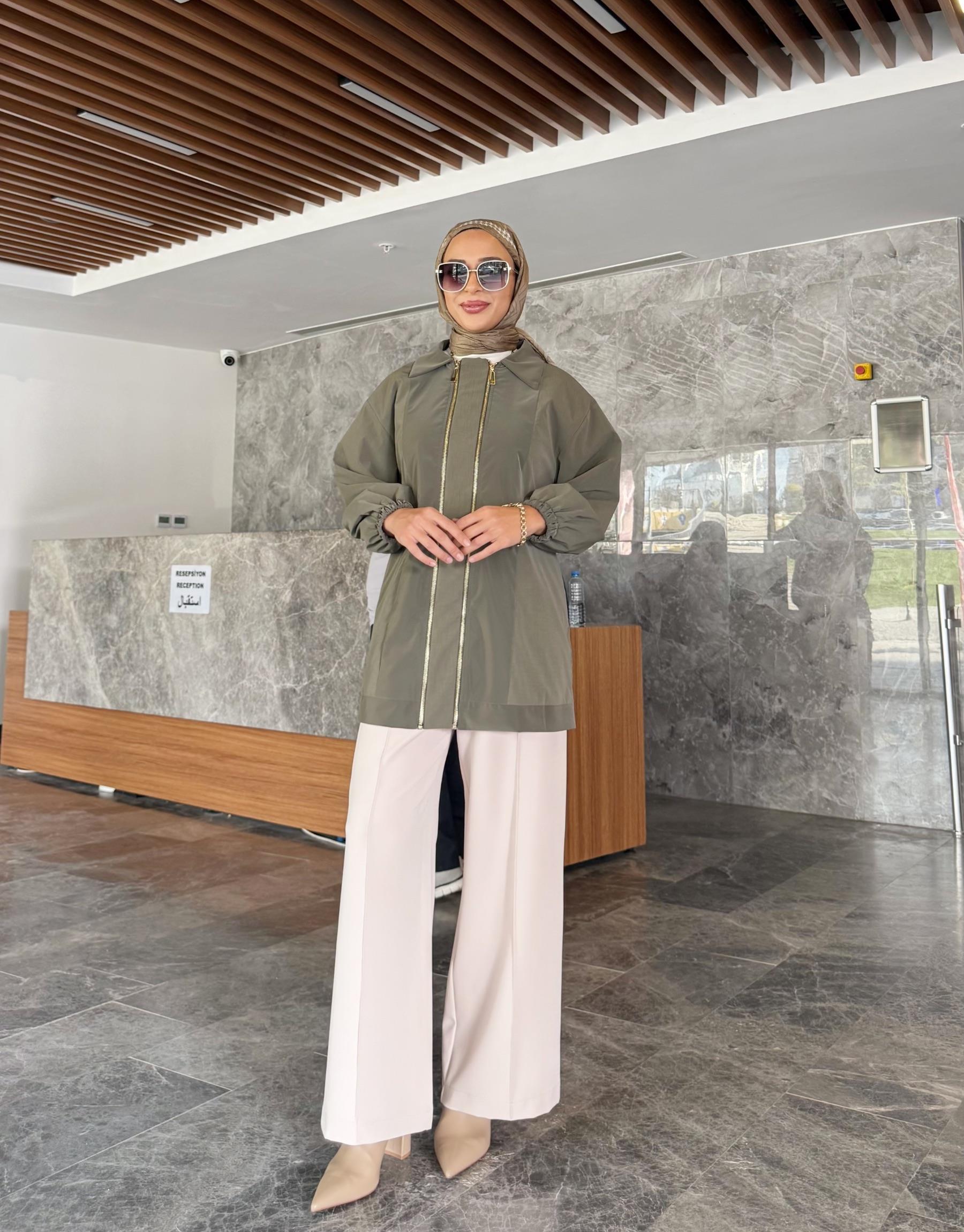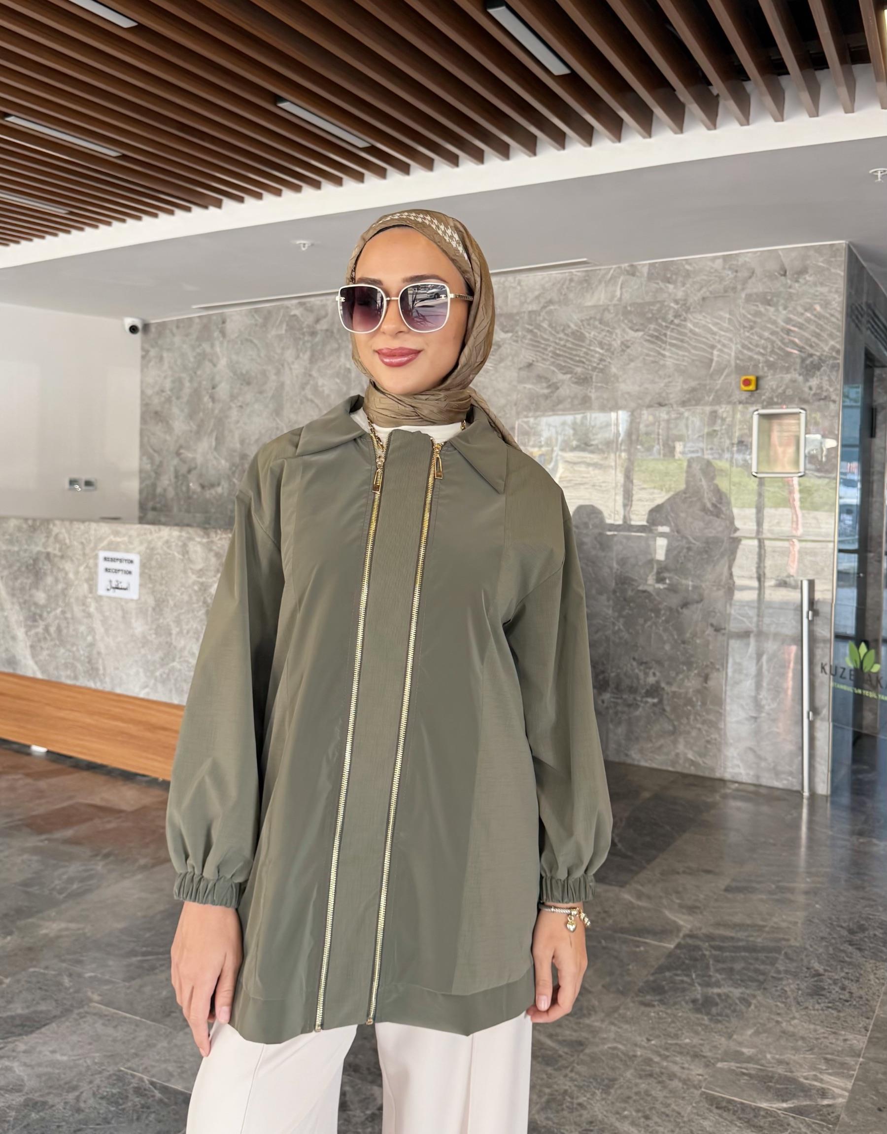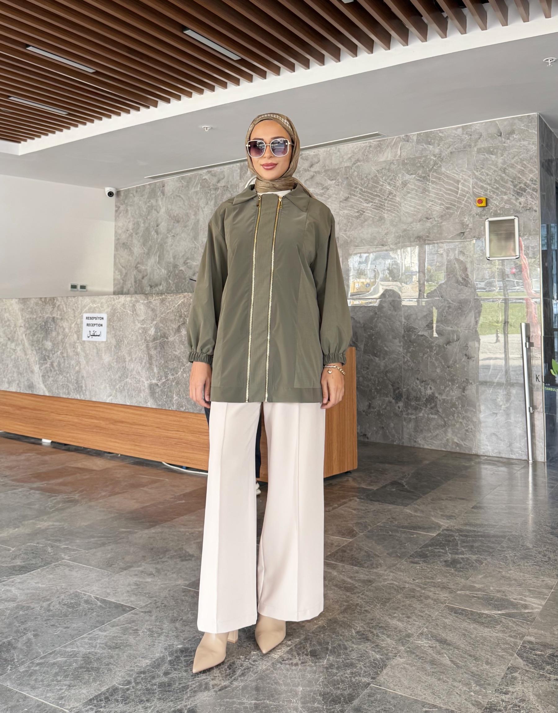 FERMUAR DETAYLI YAKALI YAĞMURLUK HAKİ