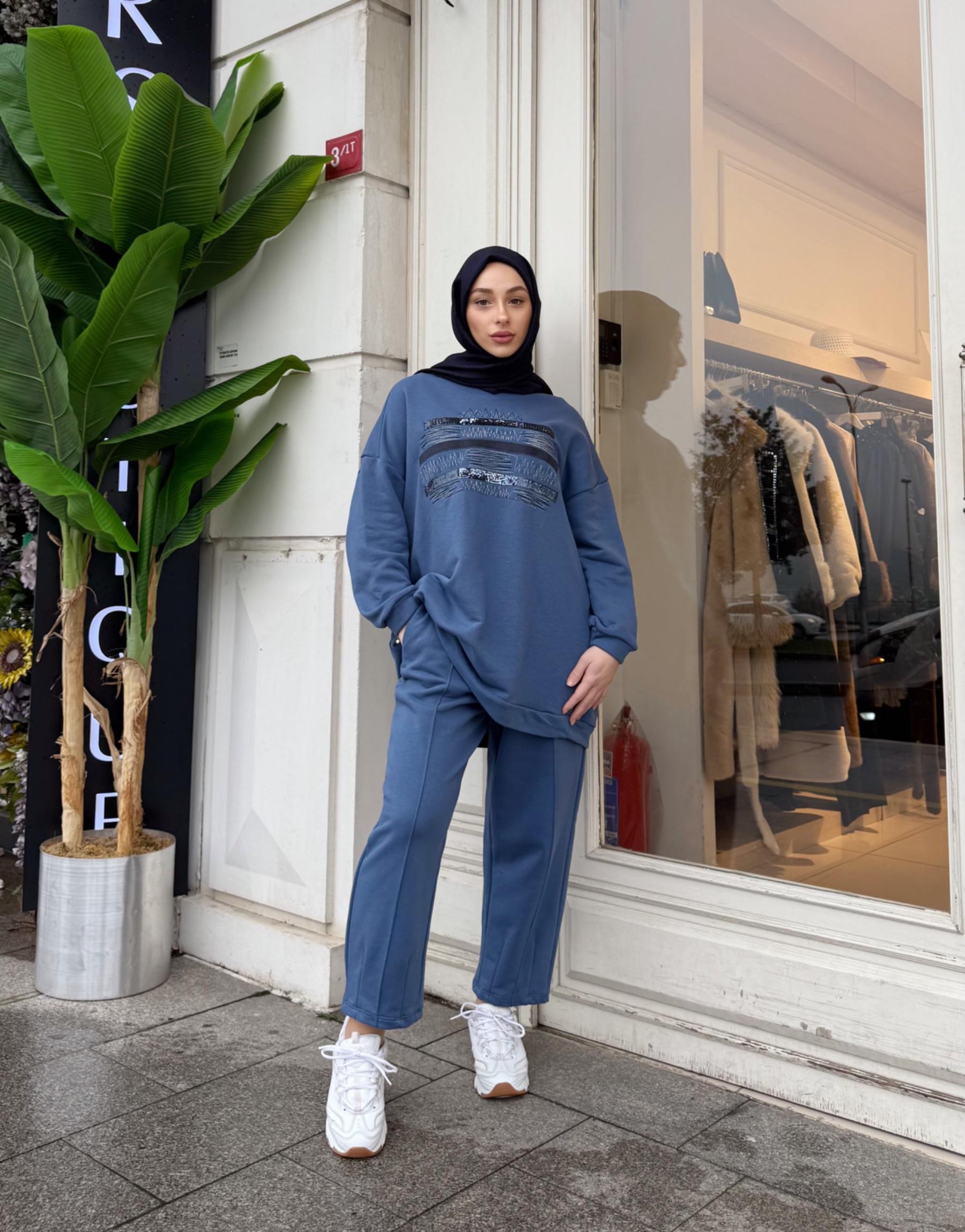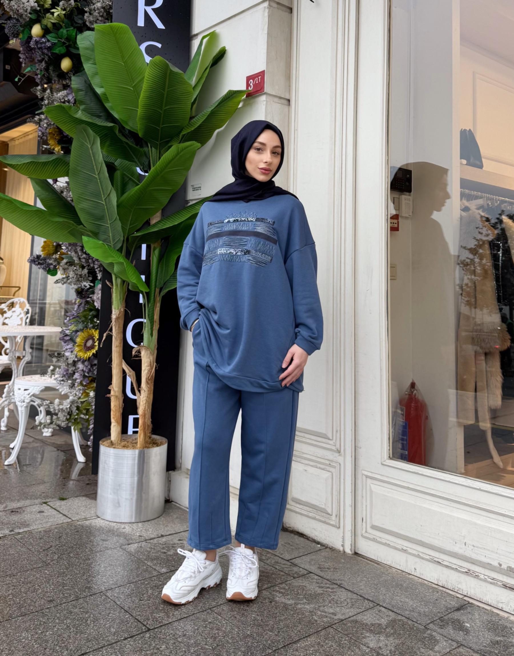 DARLA PAYETLİ ÜÇ İPLİK SWEAT İNDİGO