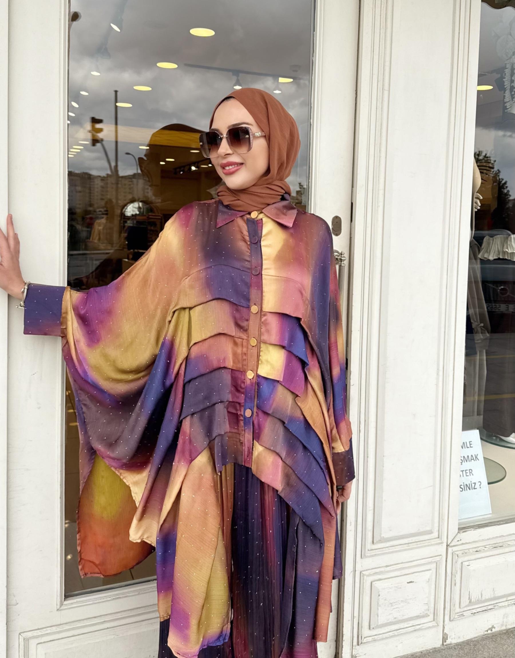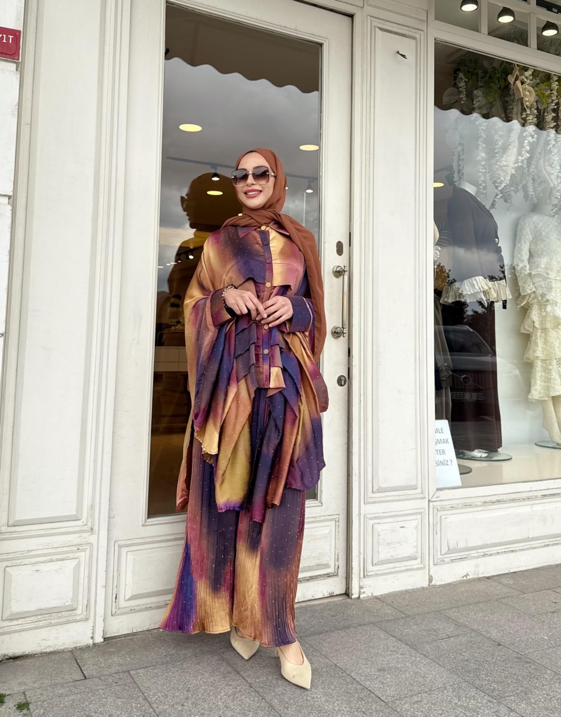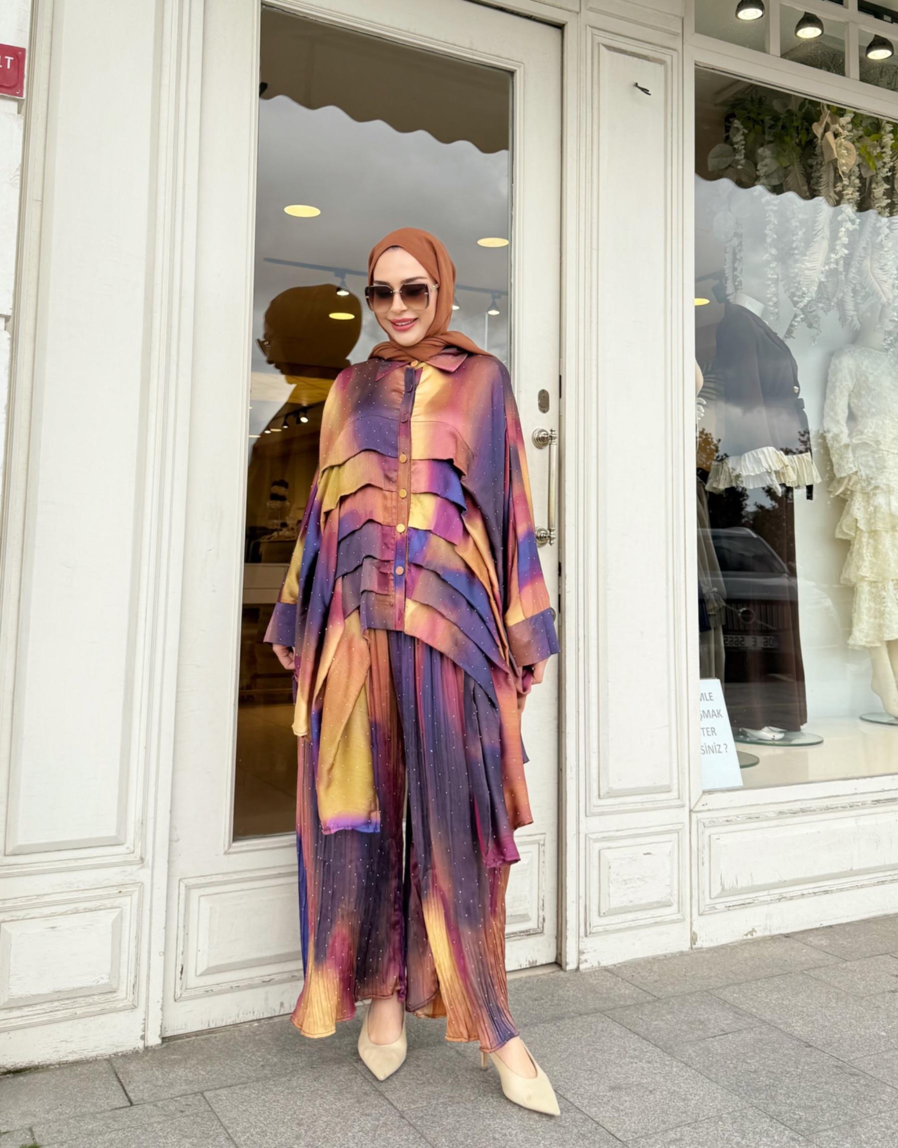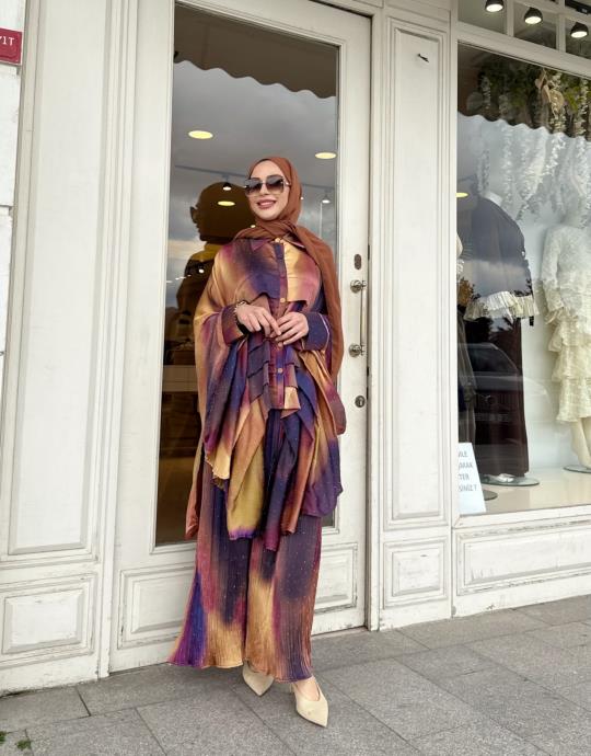 GARNİLİLİ PLİSE PANTALONLU TAKIM MÜRDÜM
