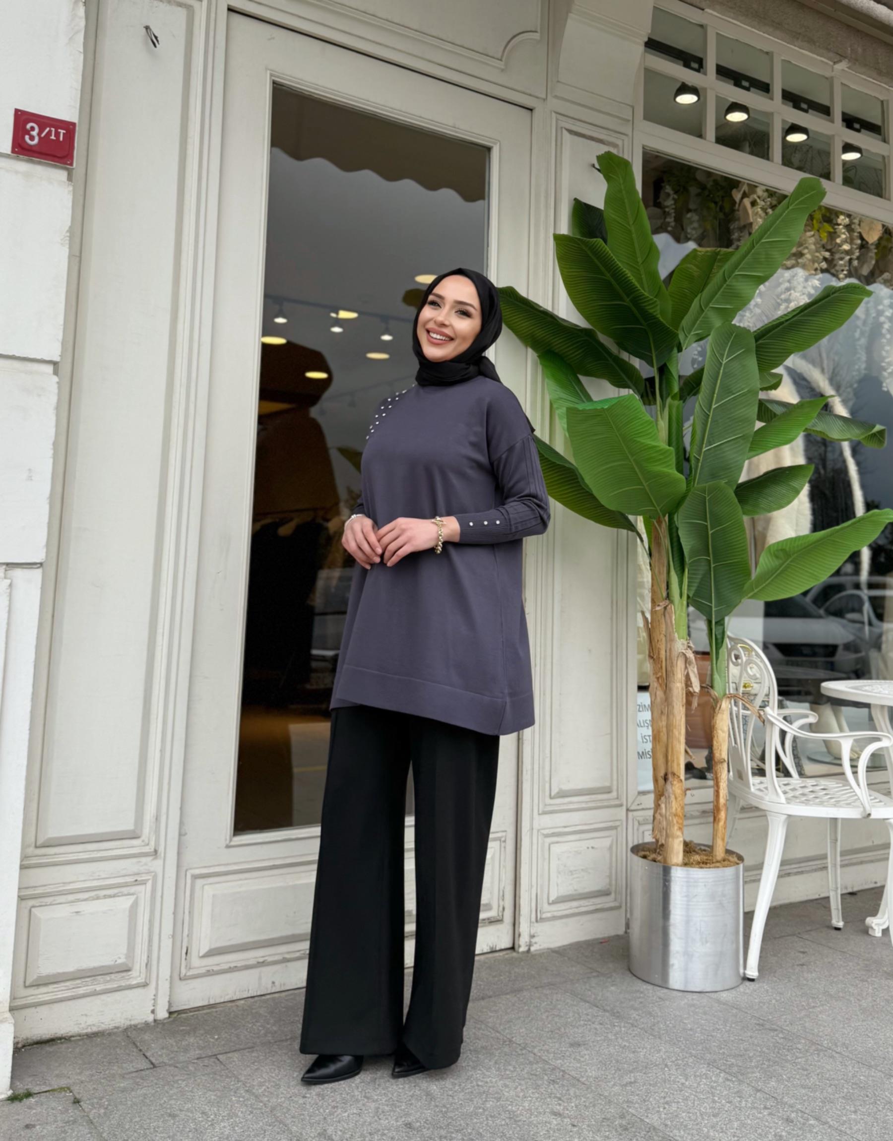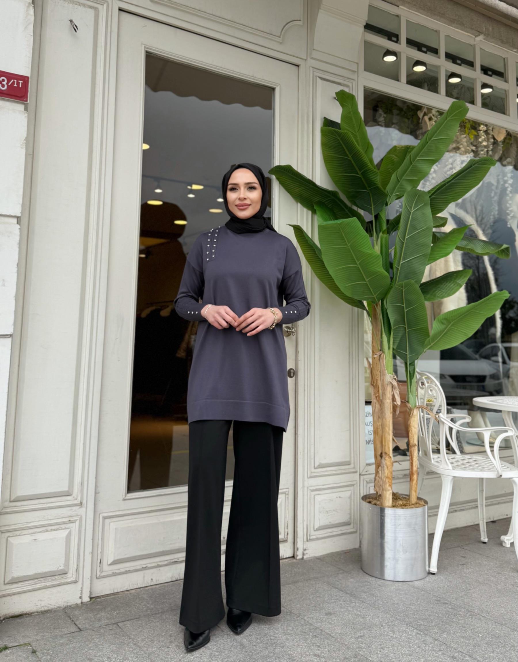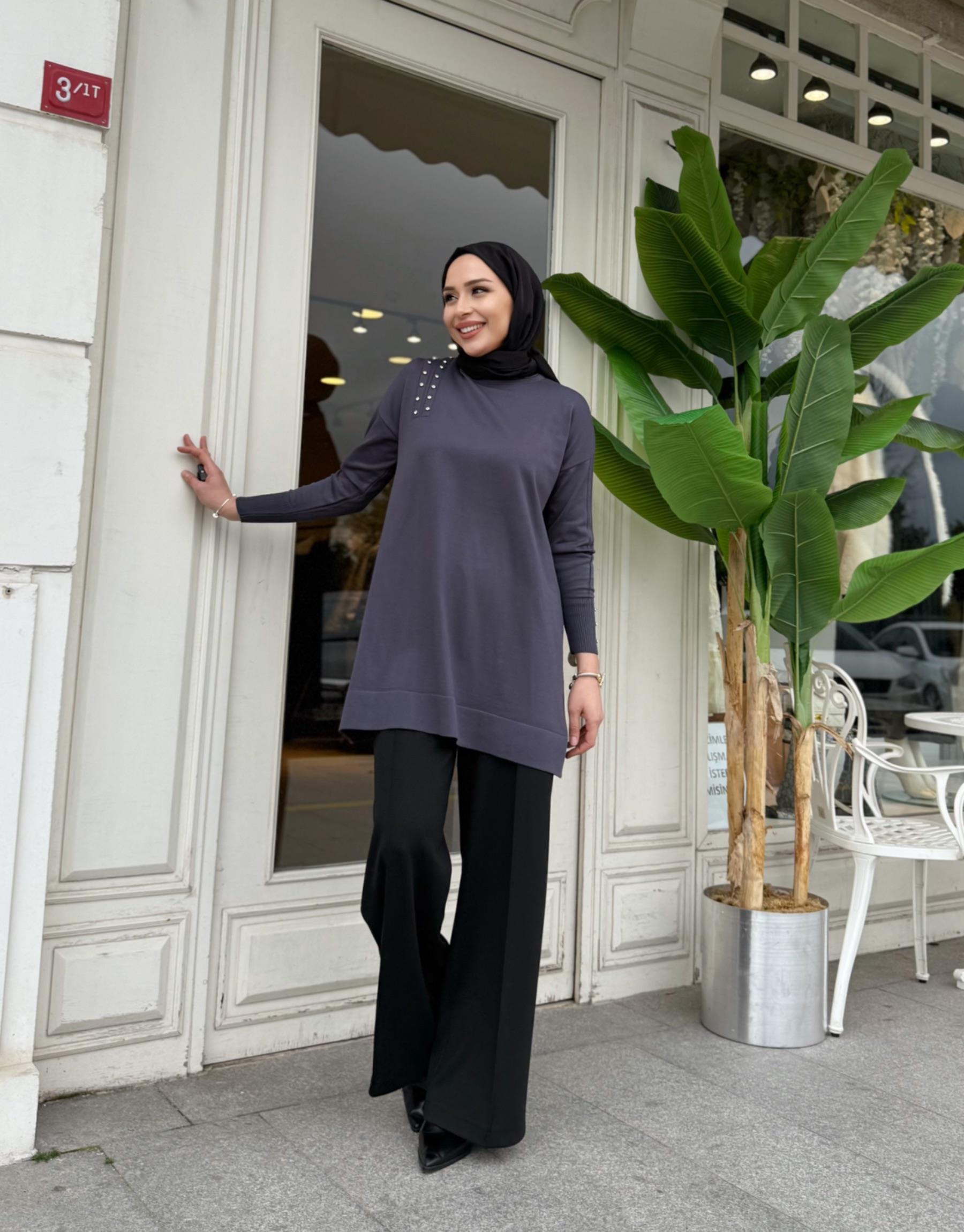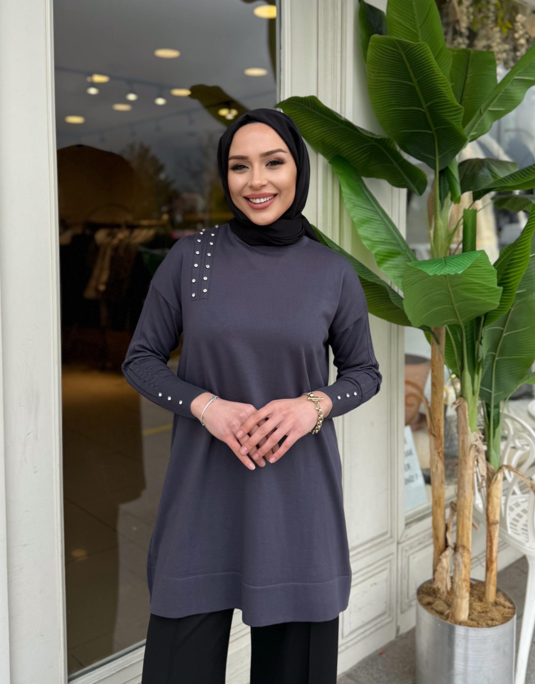 kadin SIRALI TAŞLI TRİKO TUNİK