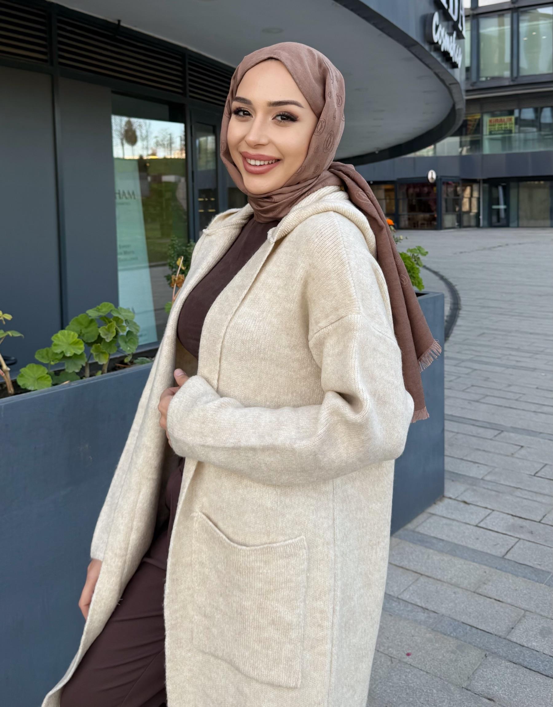 KAPÜŞONLU ÇITÇITLI HIRKA KAHVE