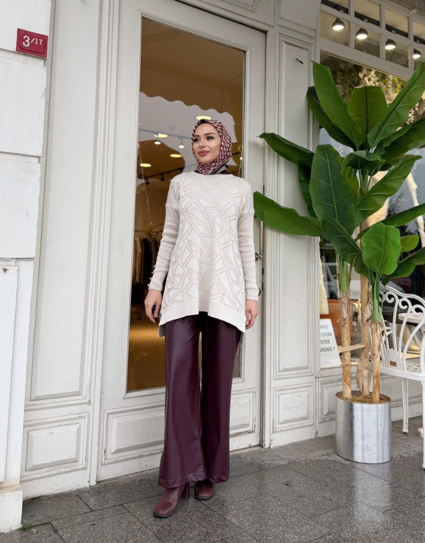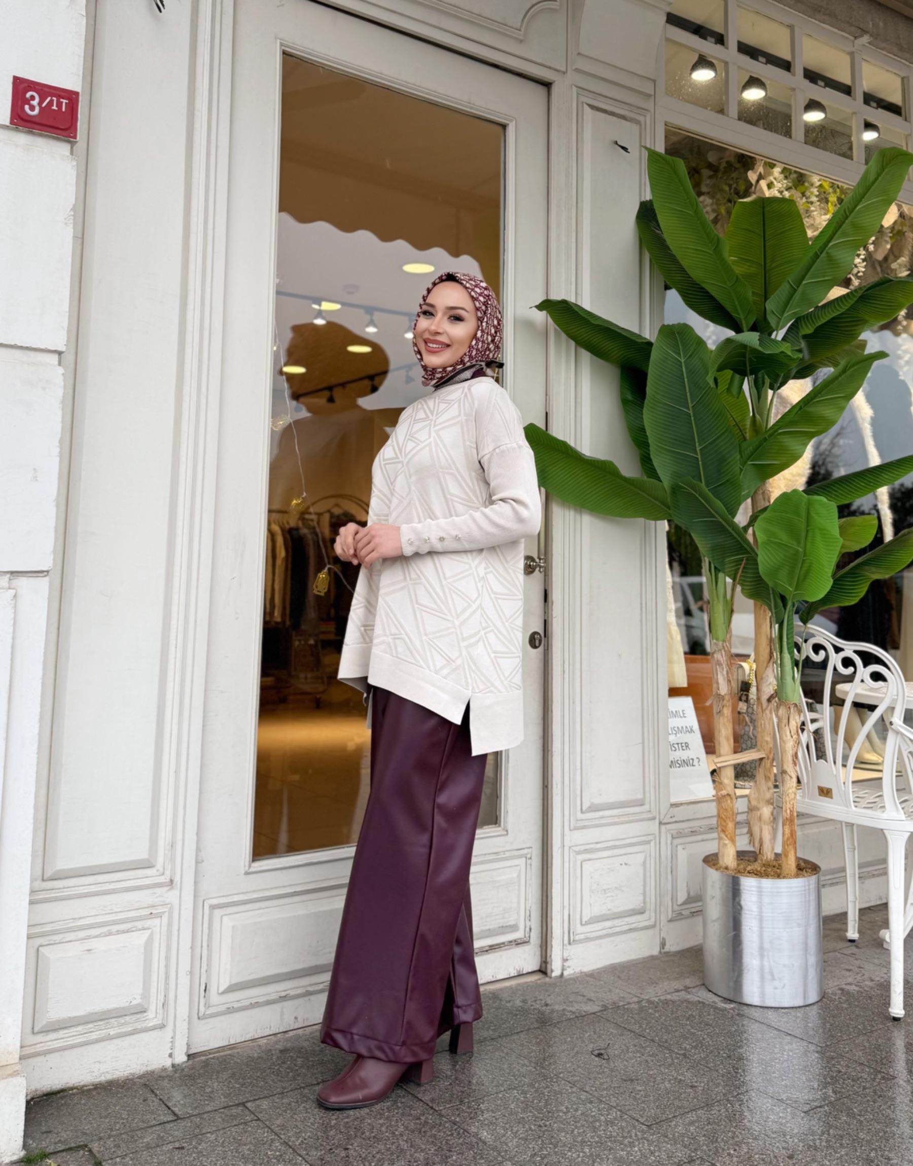 KOL DETAY TRİKO TUNİK BORDO