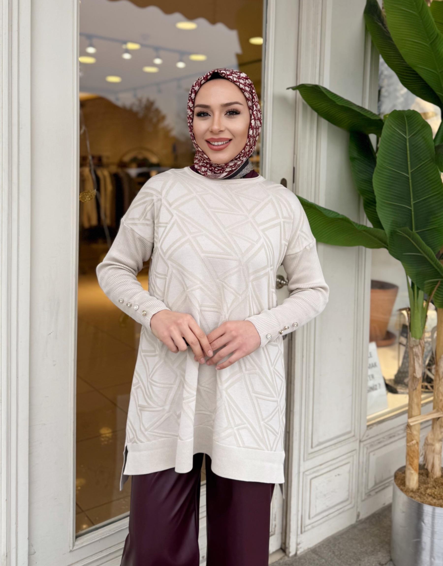 KOL DETAY TRİKO TUNİK BEJ