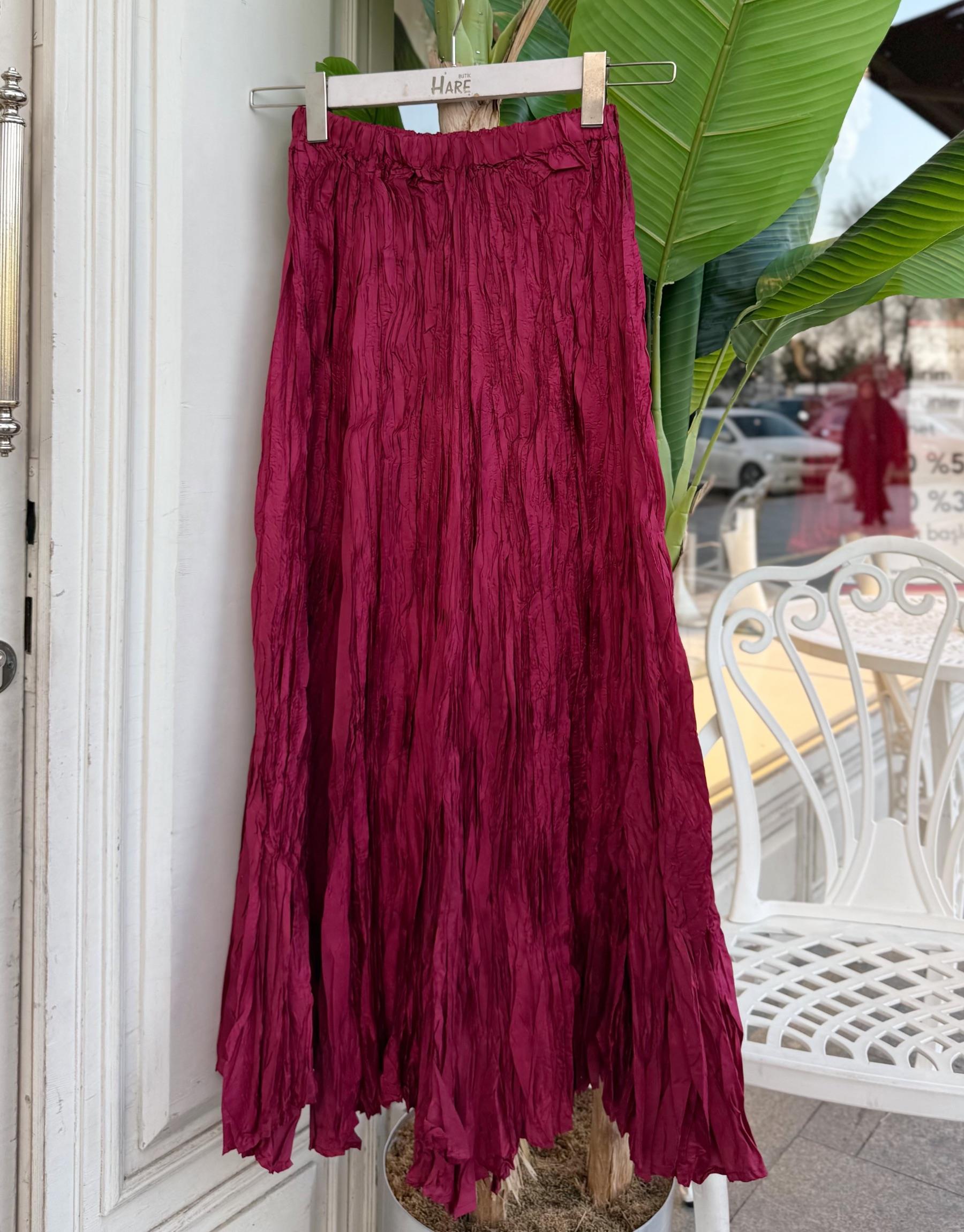 İTHAL PLİSELİ TRİKO ETEK KAHVE