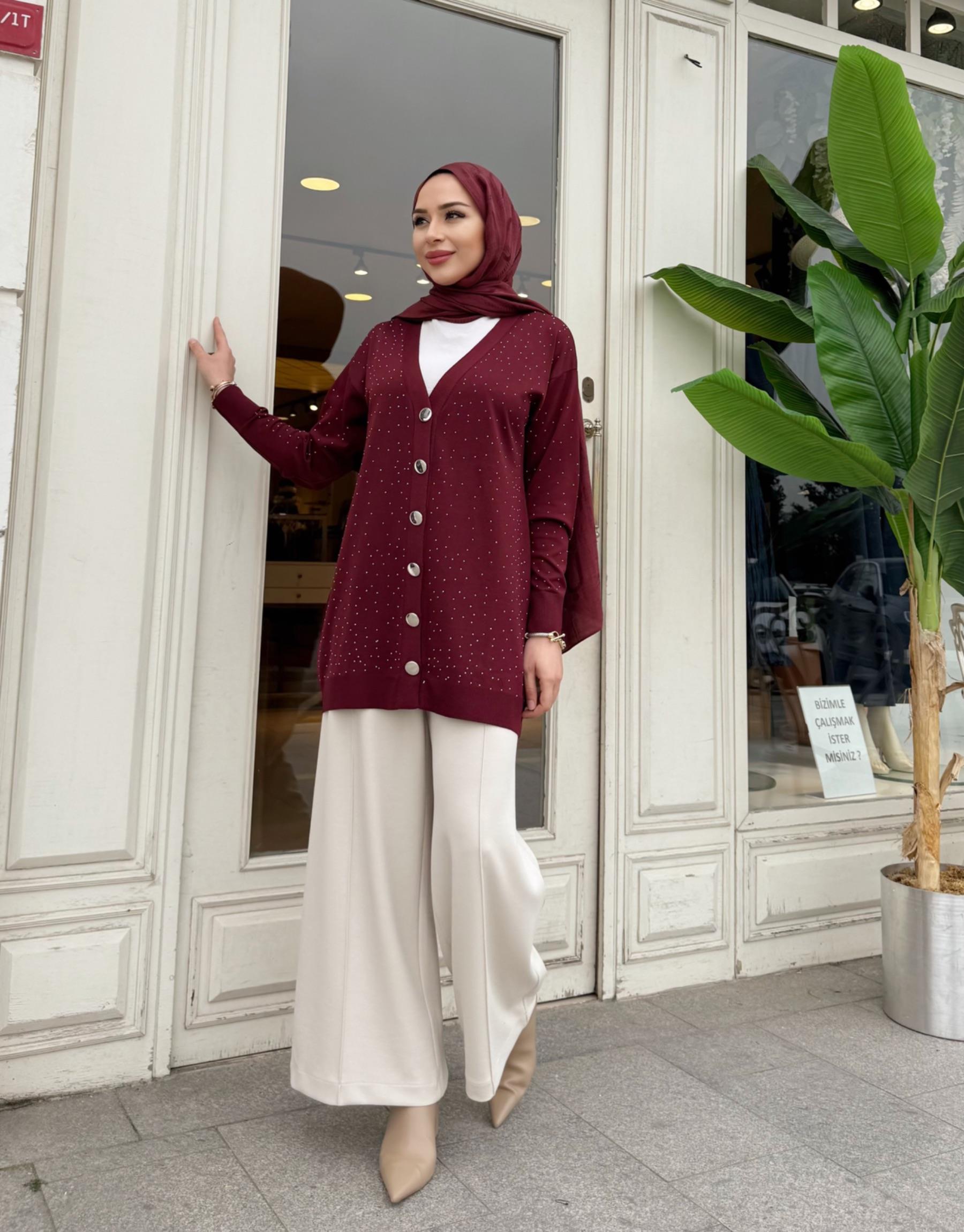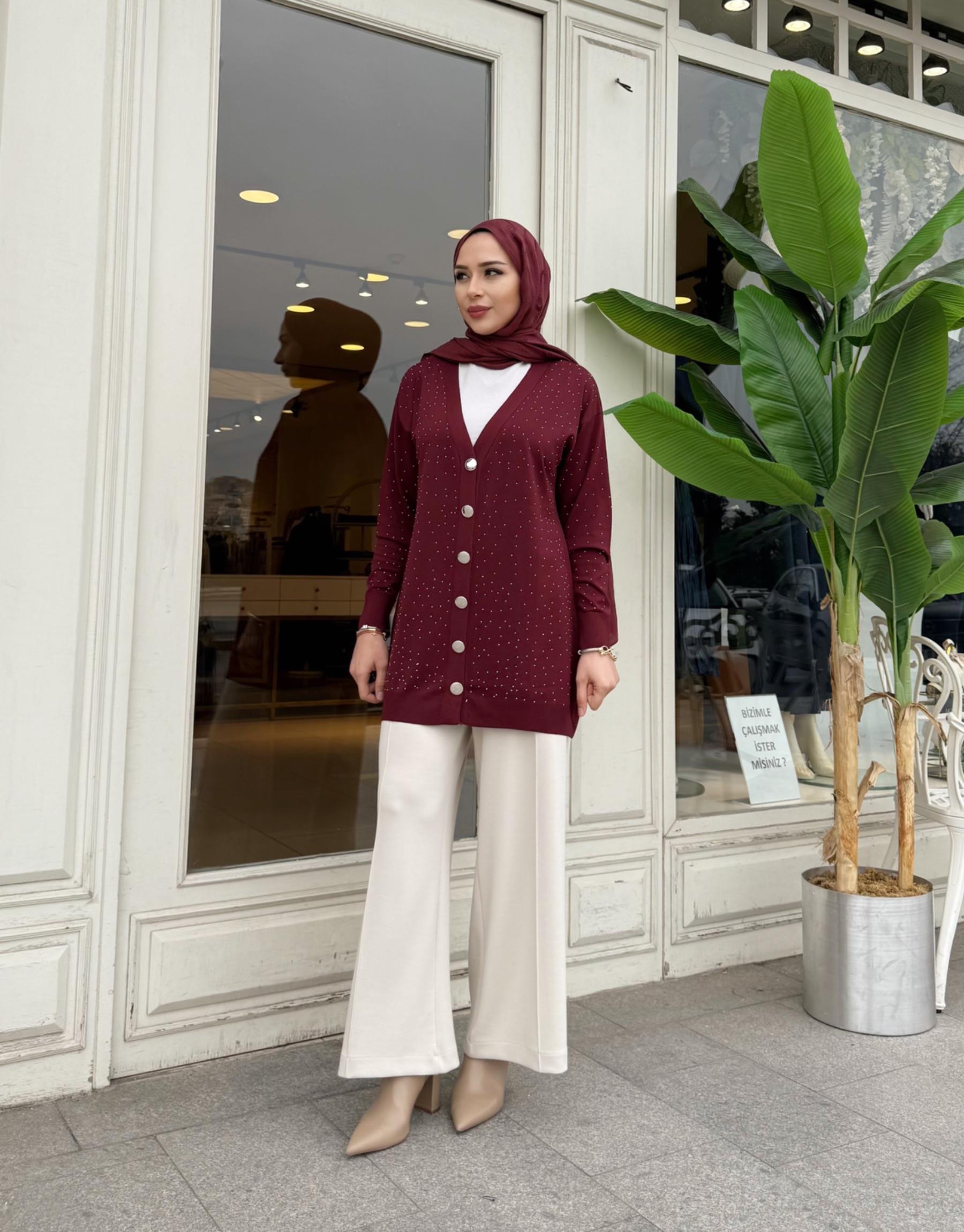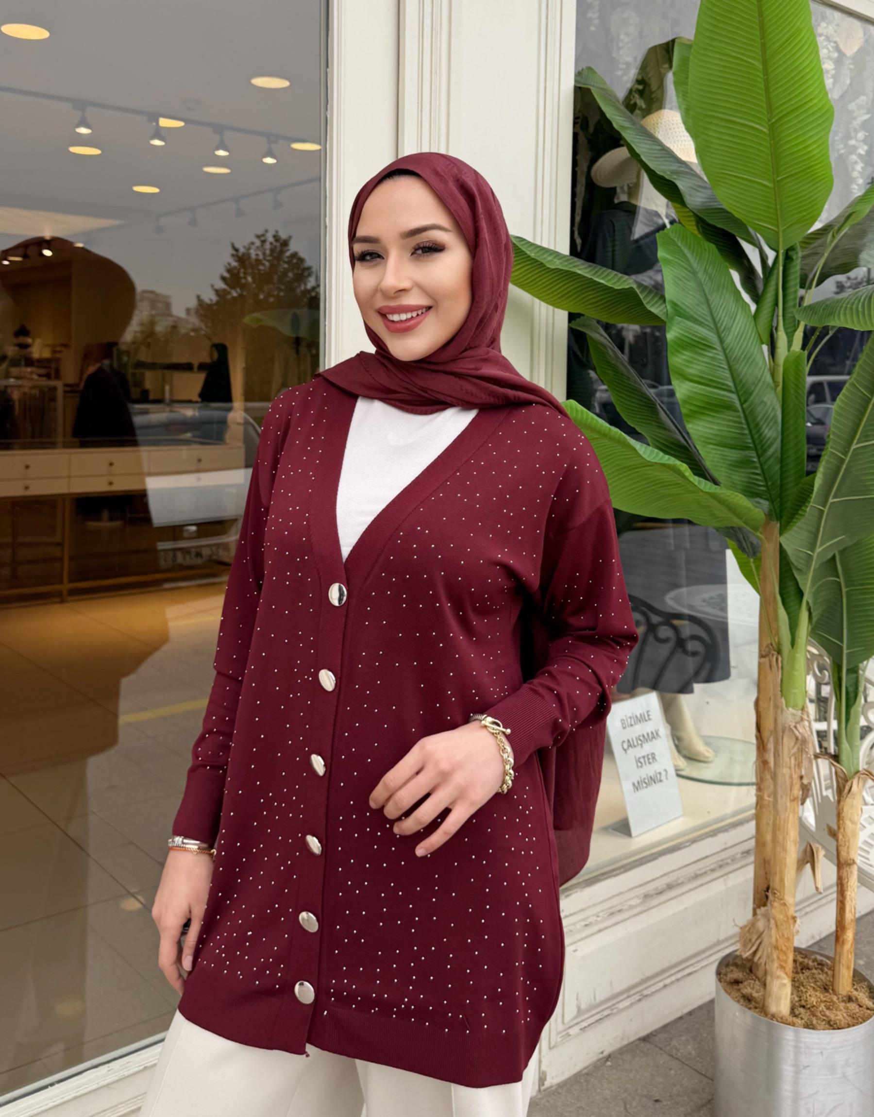 SERPME TAŞLI MERSERİZE HIRKA KAHVE