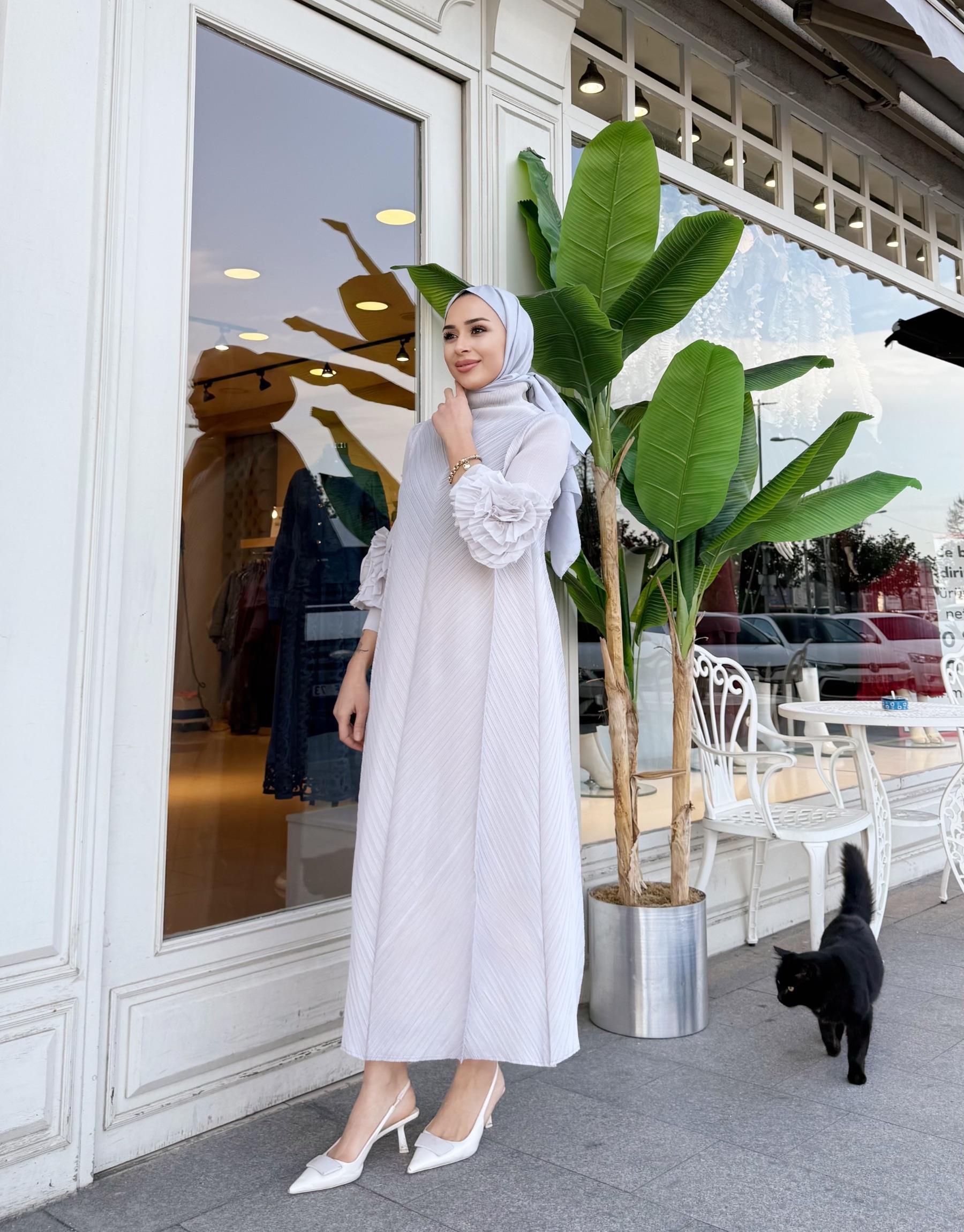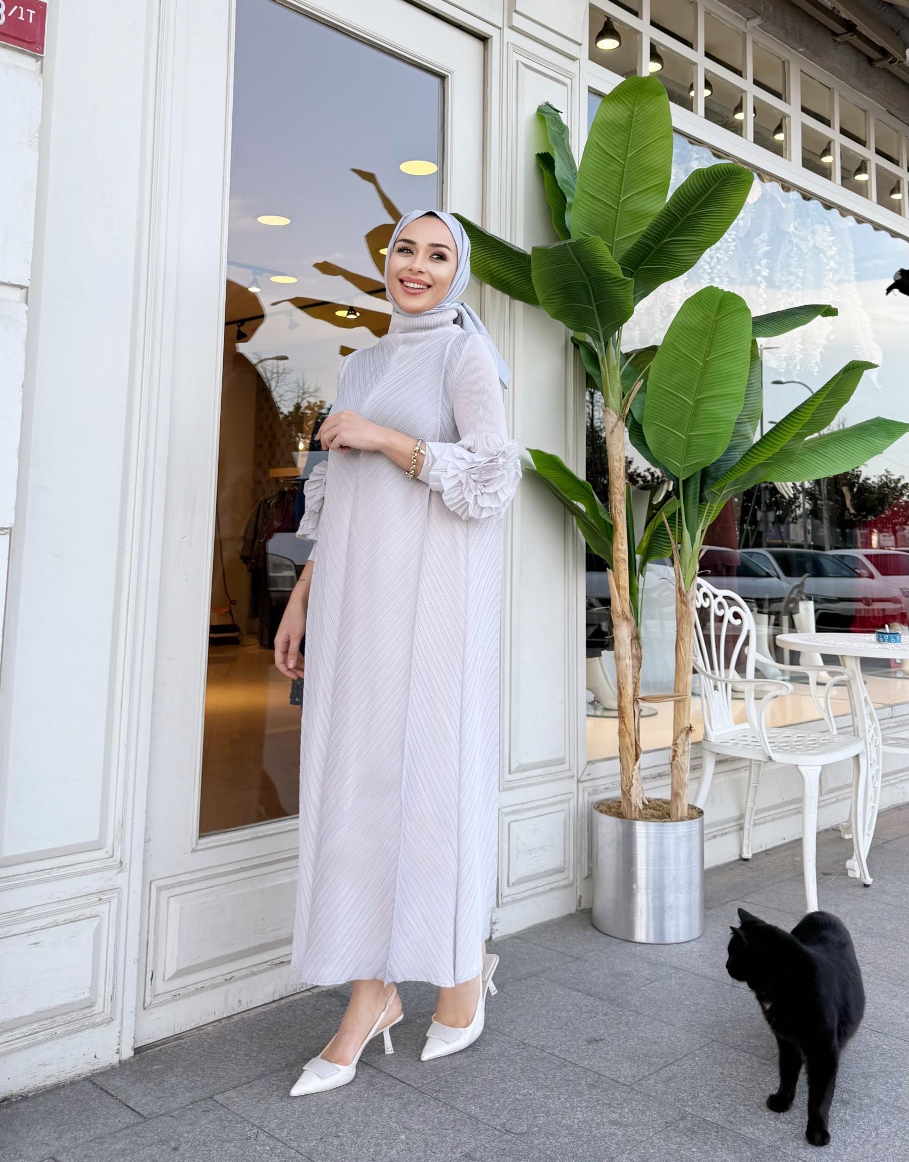 FIRFIR DETAY KEMERLİ SATEN ELBİSE SİYAH