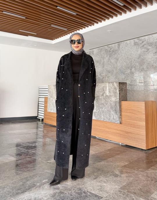 KOLU TRİKO SERPME TAŞLI ANGORA HIRKA SİYAH