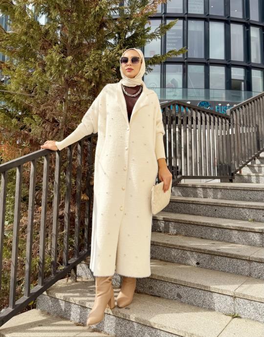 KOLU TRİKO SERPME TAŞLI ANGORA HIRKA EKRU