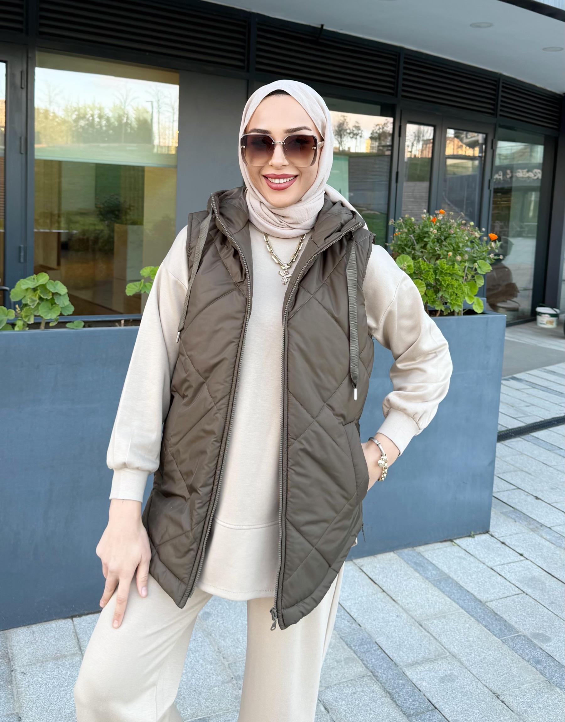 PARLA FERMUAR DETAY ŞİŞME YELEK HAKİ