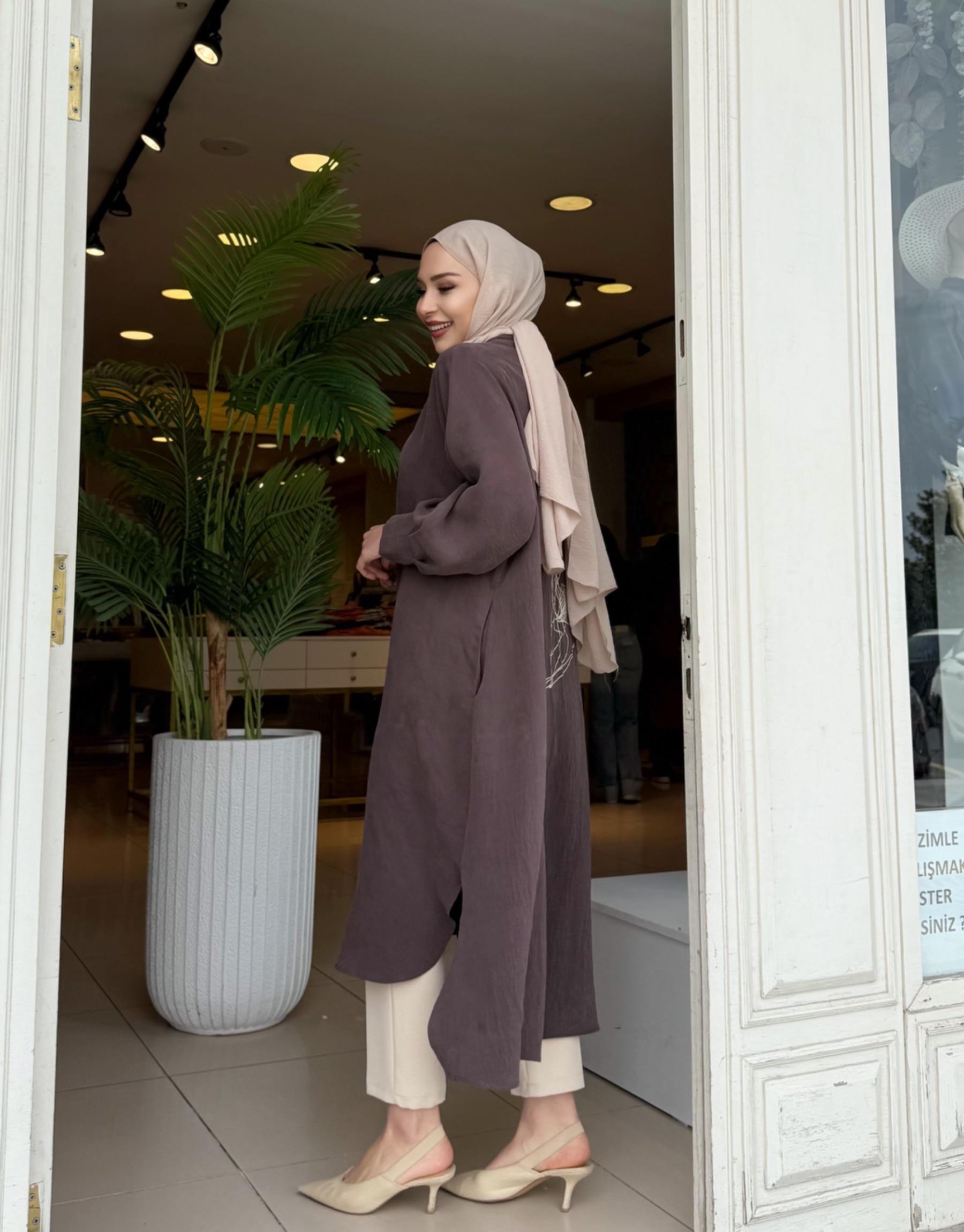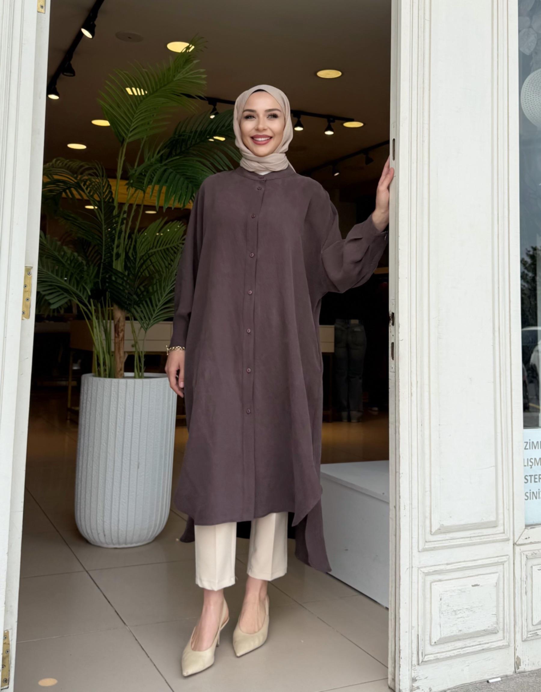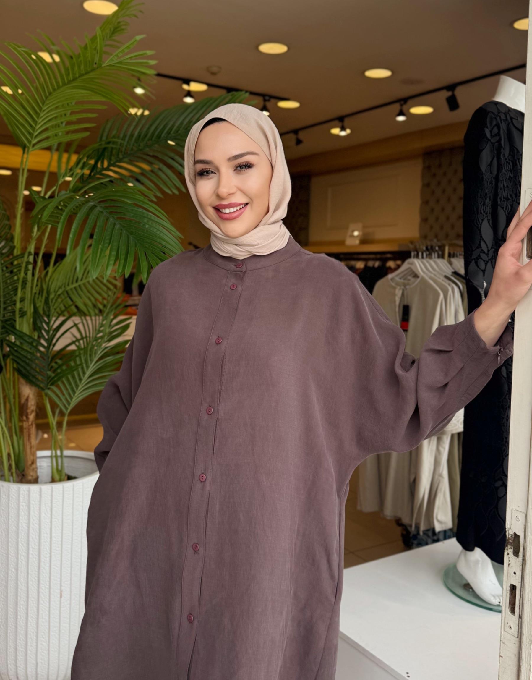 kadin LUNARİA BASKI DETAY UZUN GÖMLEK