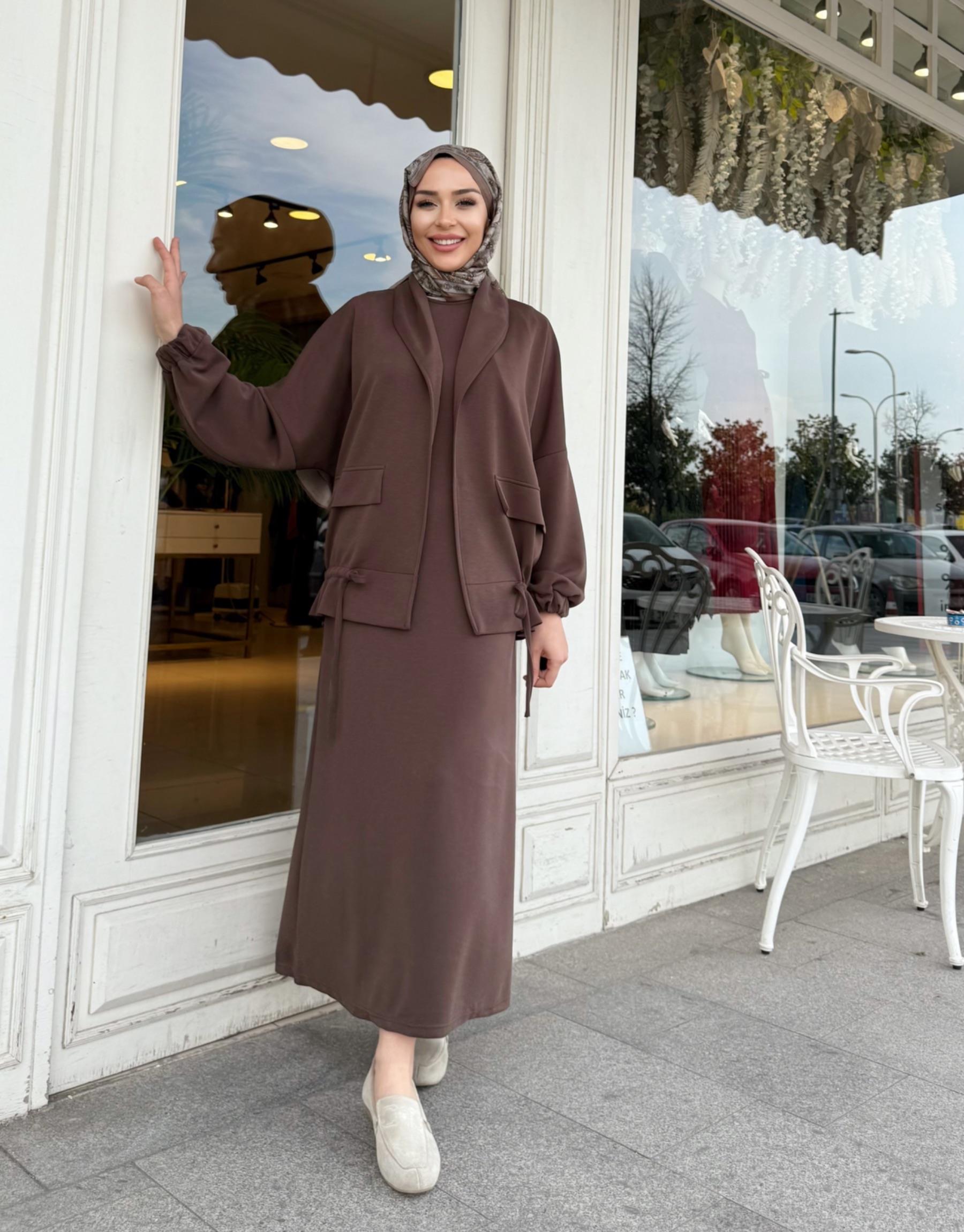 OYSHO SIFIR KOL ELBİSE KAHVE