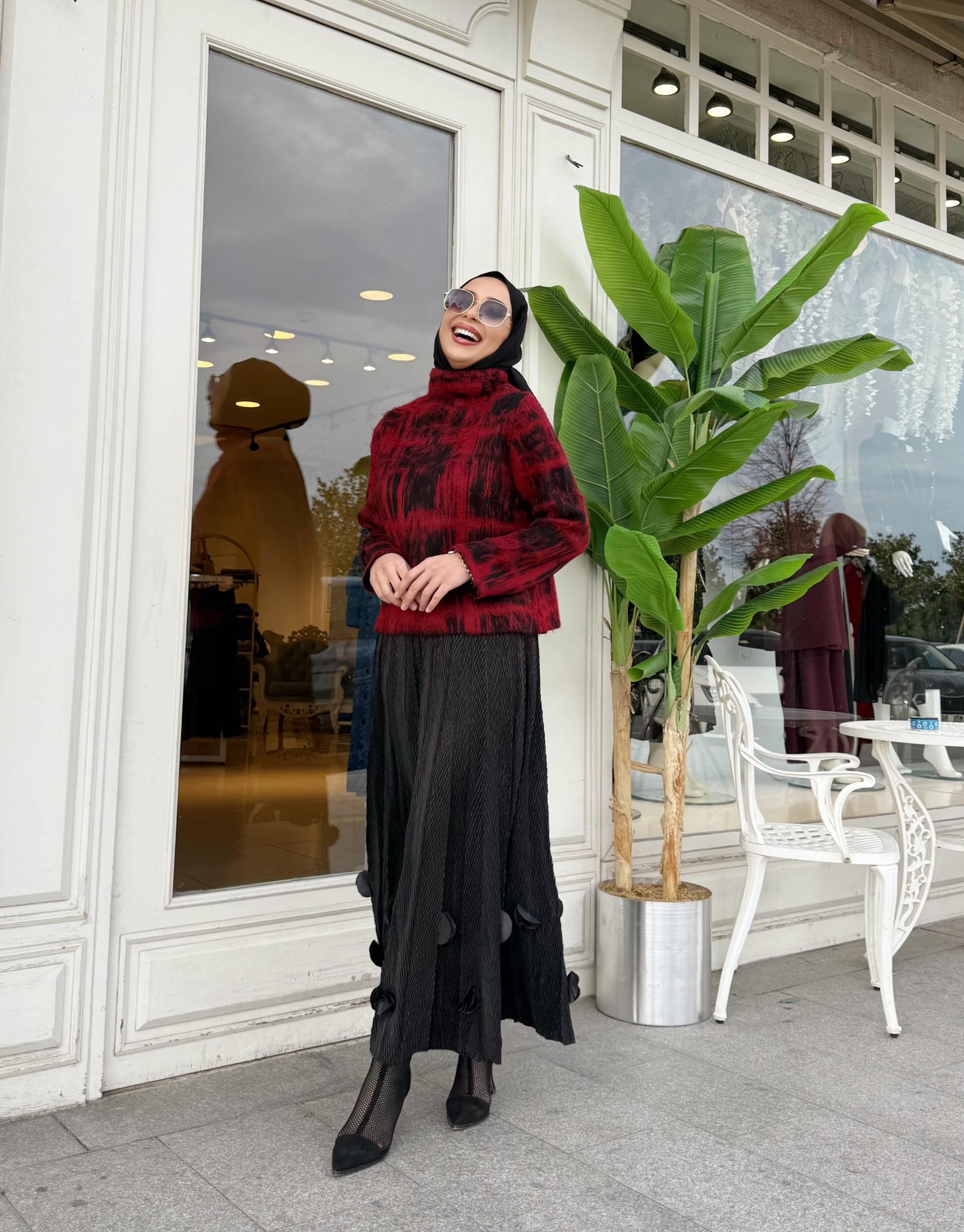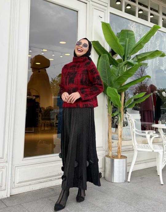 BOĞAZLI SİYAH DETAY KIRMIZI