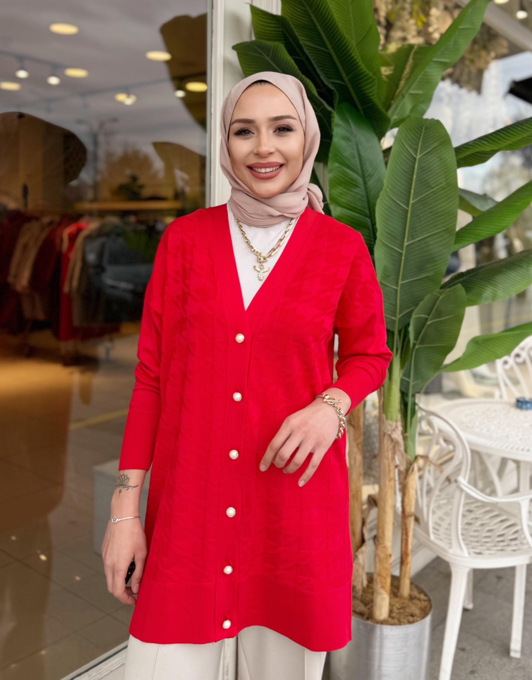 kadin İNCİ DÜĞMELİ TRİKO HIRKA