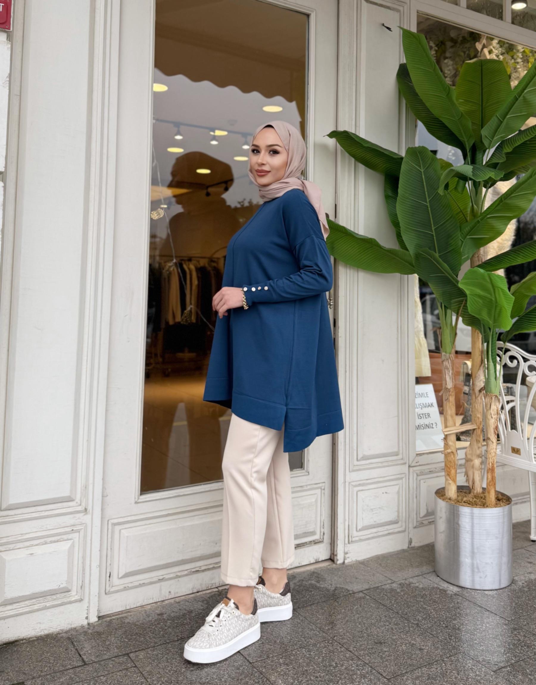 kadin KOLU TAŞLI BASİC TRİKO TUNİK