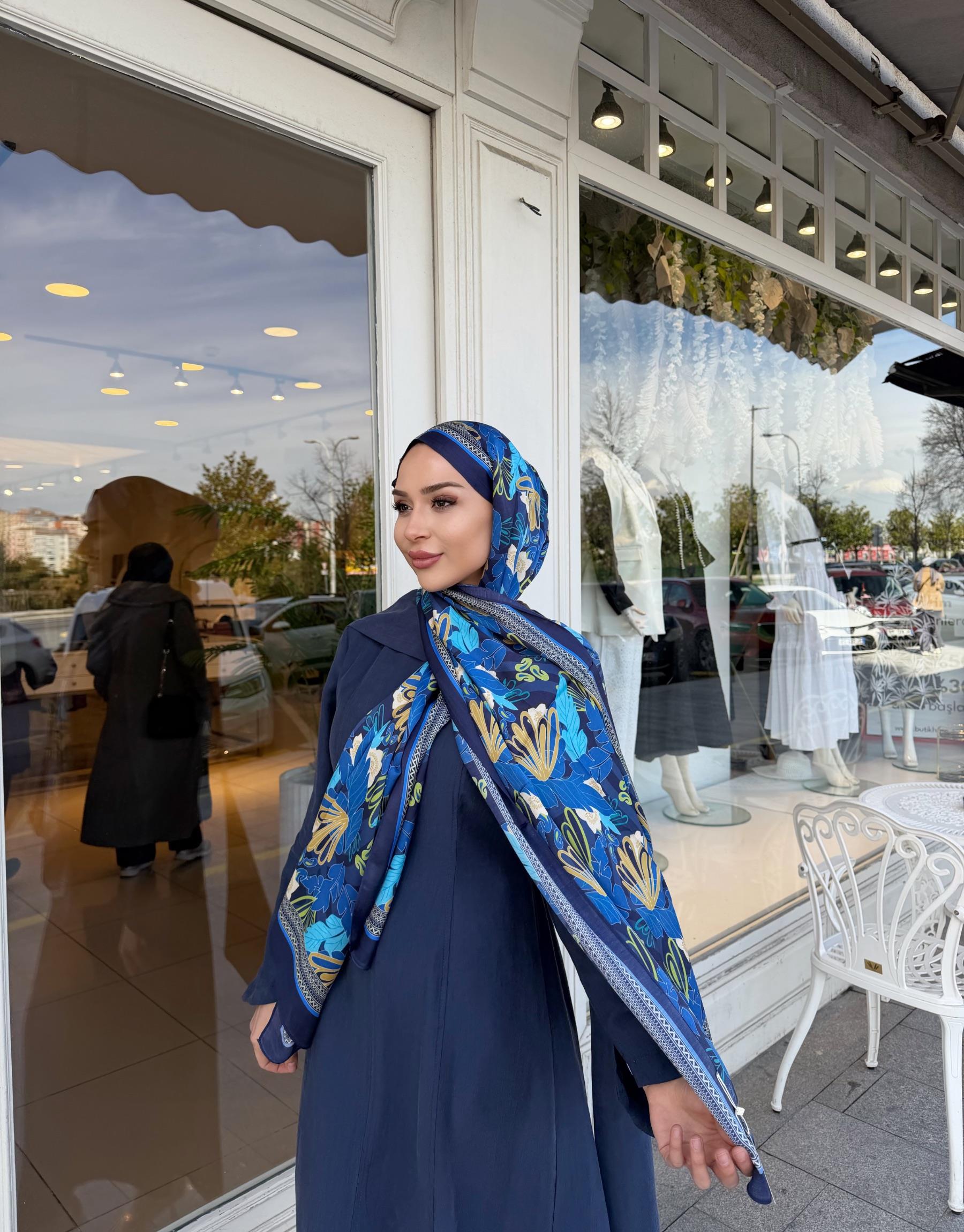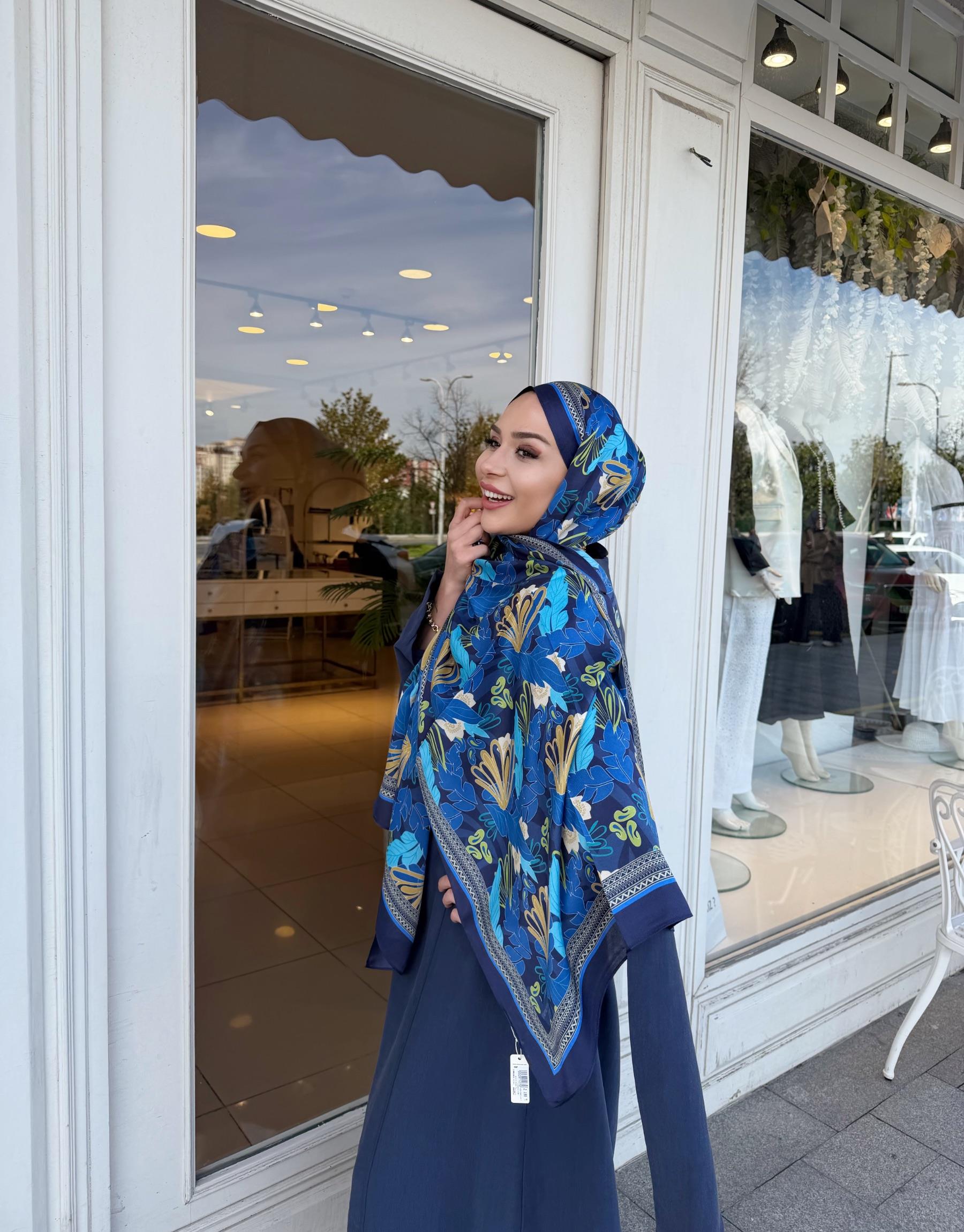 NORA DESENLİ ŞAL MAVİ