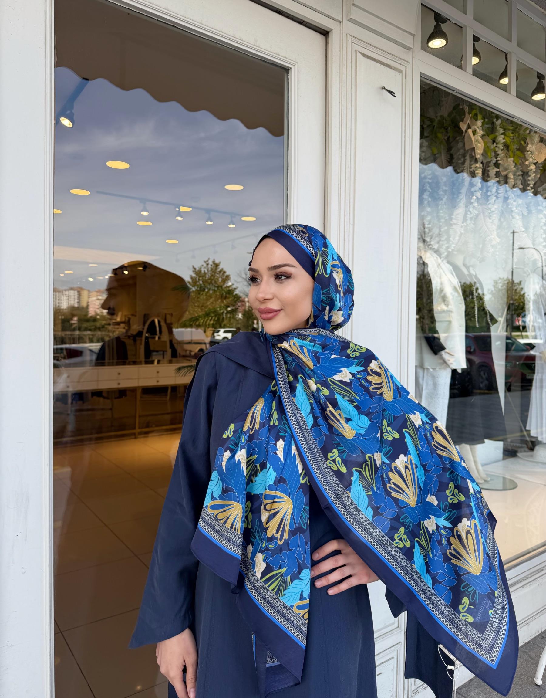 NORA DESENLİ ŞAL LACİVERT