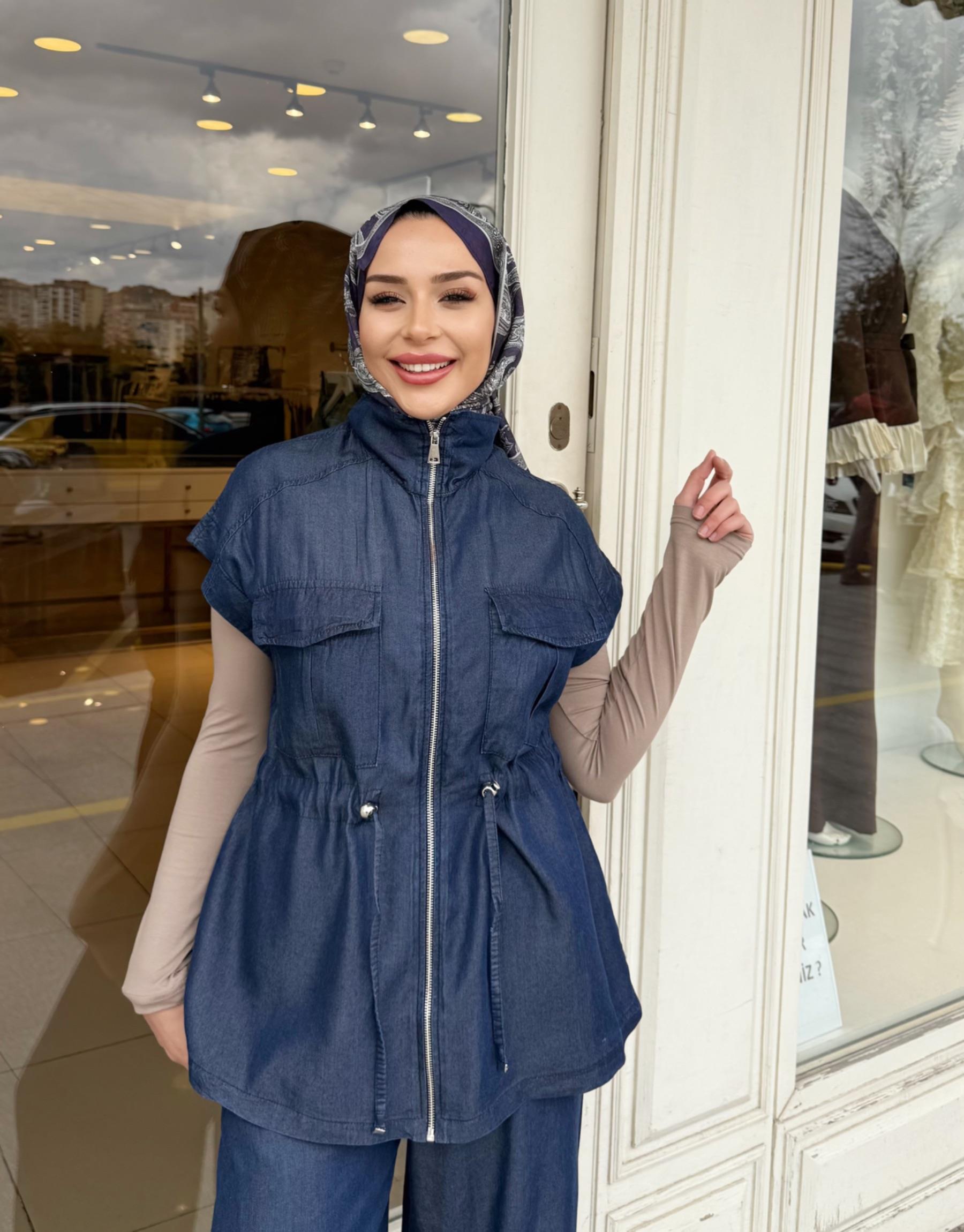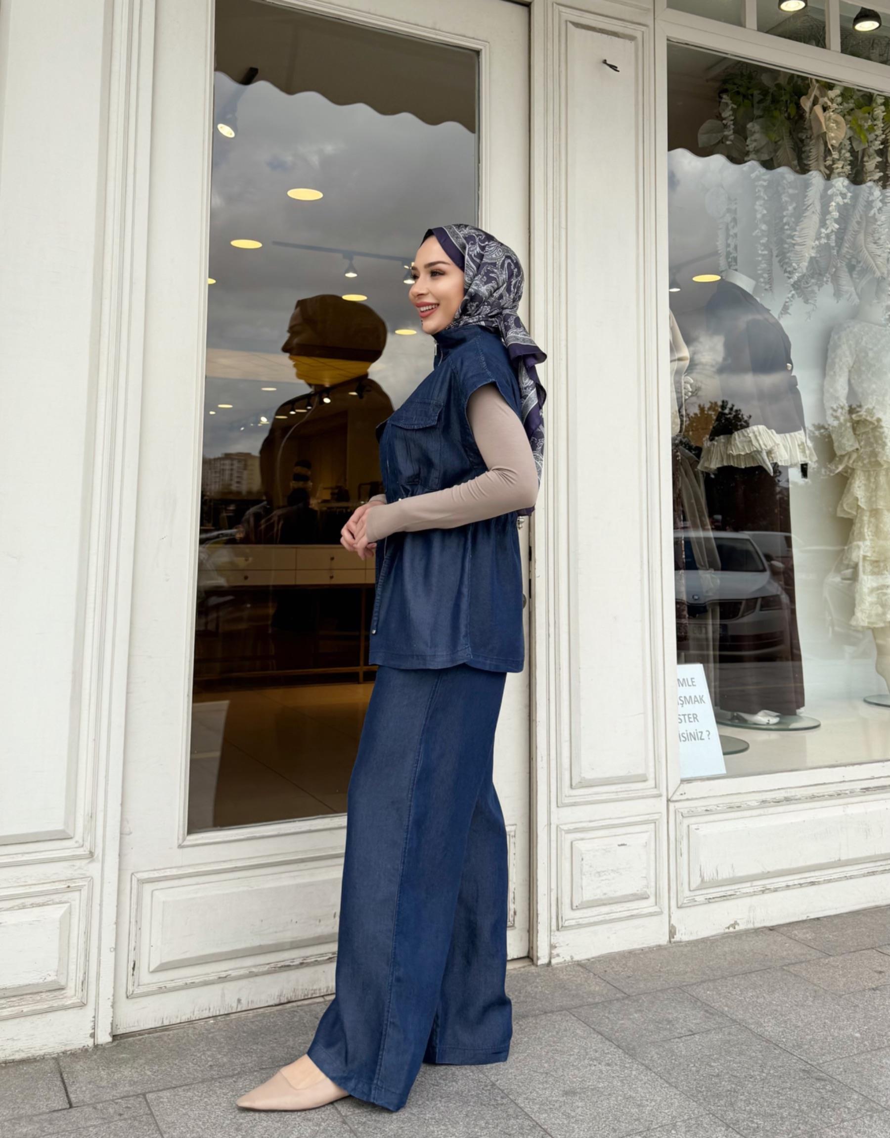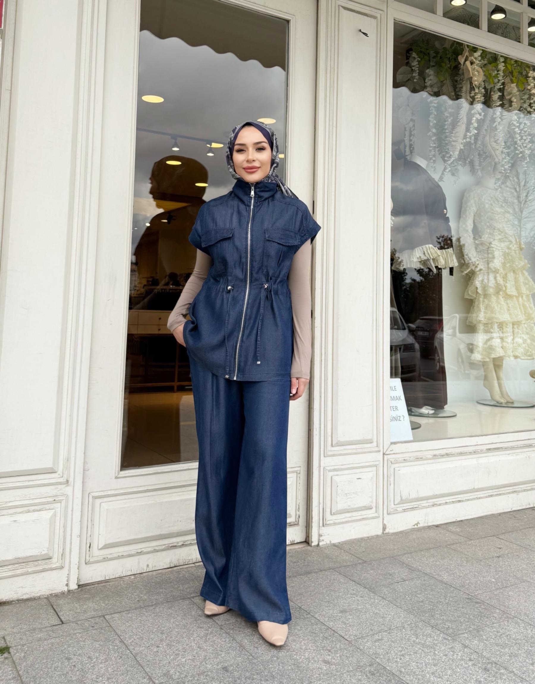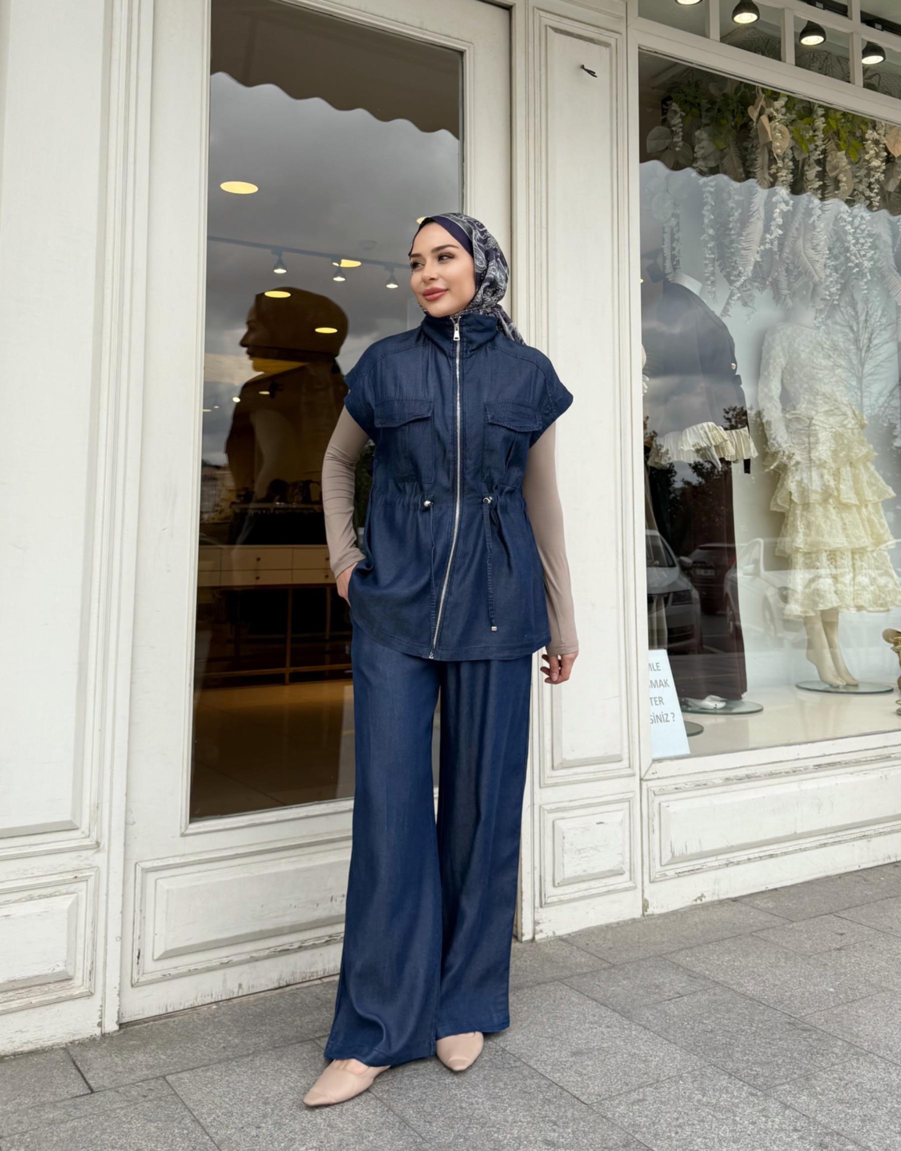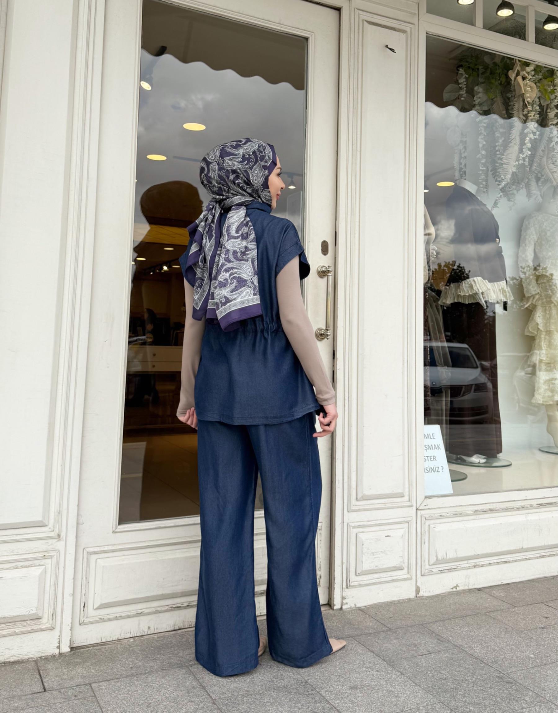 PANTOLON ETEKLİ TENSEL TAKIM LACİVERT