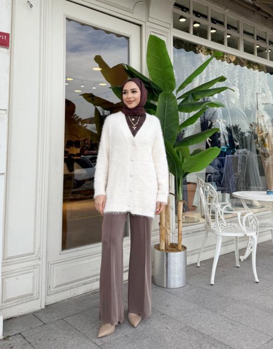 TAŞ DÜĞMELİ PELUŞ HIRKA EKRU