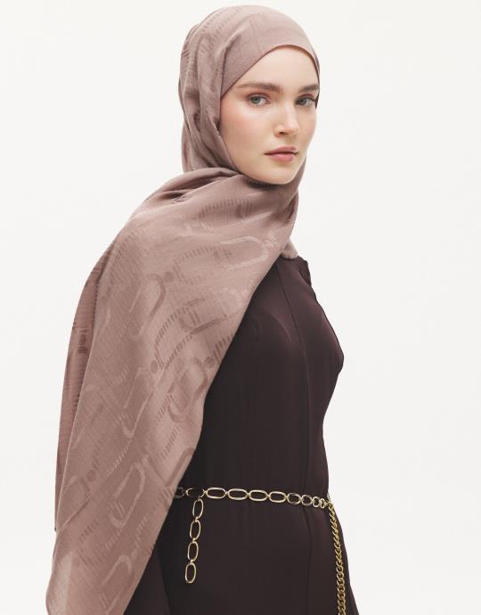 NADİRA GEOMETRİK DESEN ŞAL Koyu Pudra