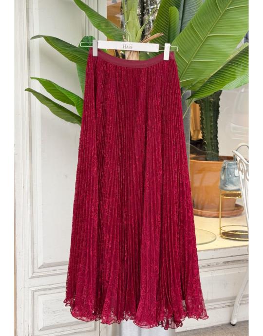 DANTEL PLİSELİ İTHAL ETEK BORDO
