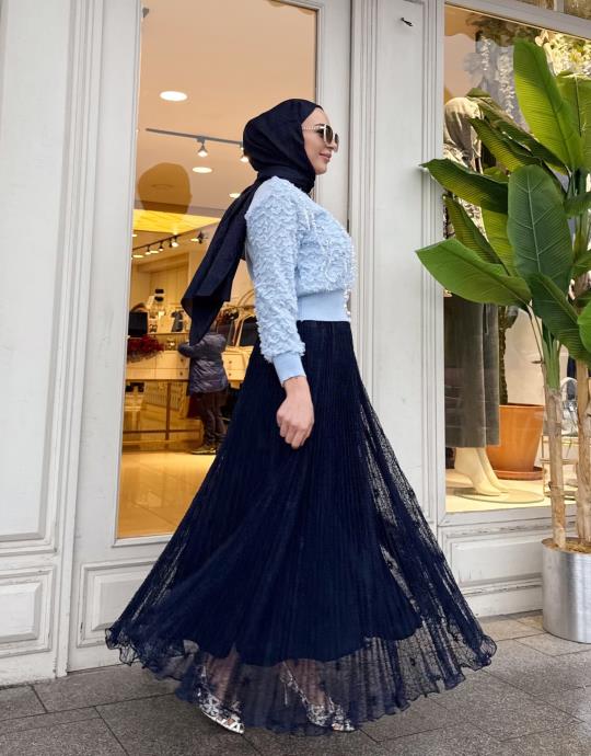 DANTEL PLİSELİ İTHAL ETEK LACİVERT