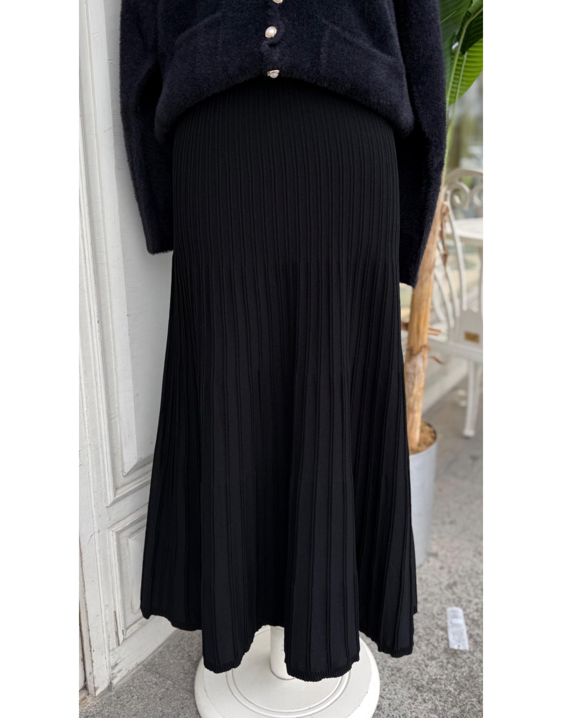 ÇİZGİLİ TRİKO ETEK SİYAH