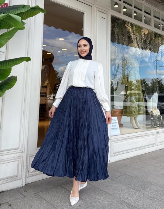 İTHAL KIRIŞIK ETEK LACİVERT