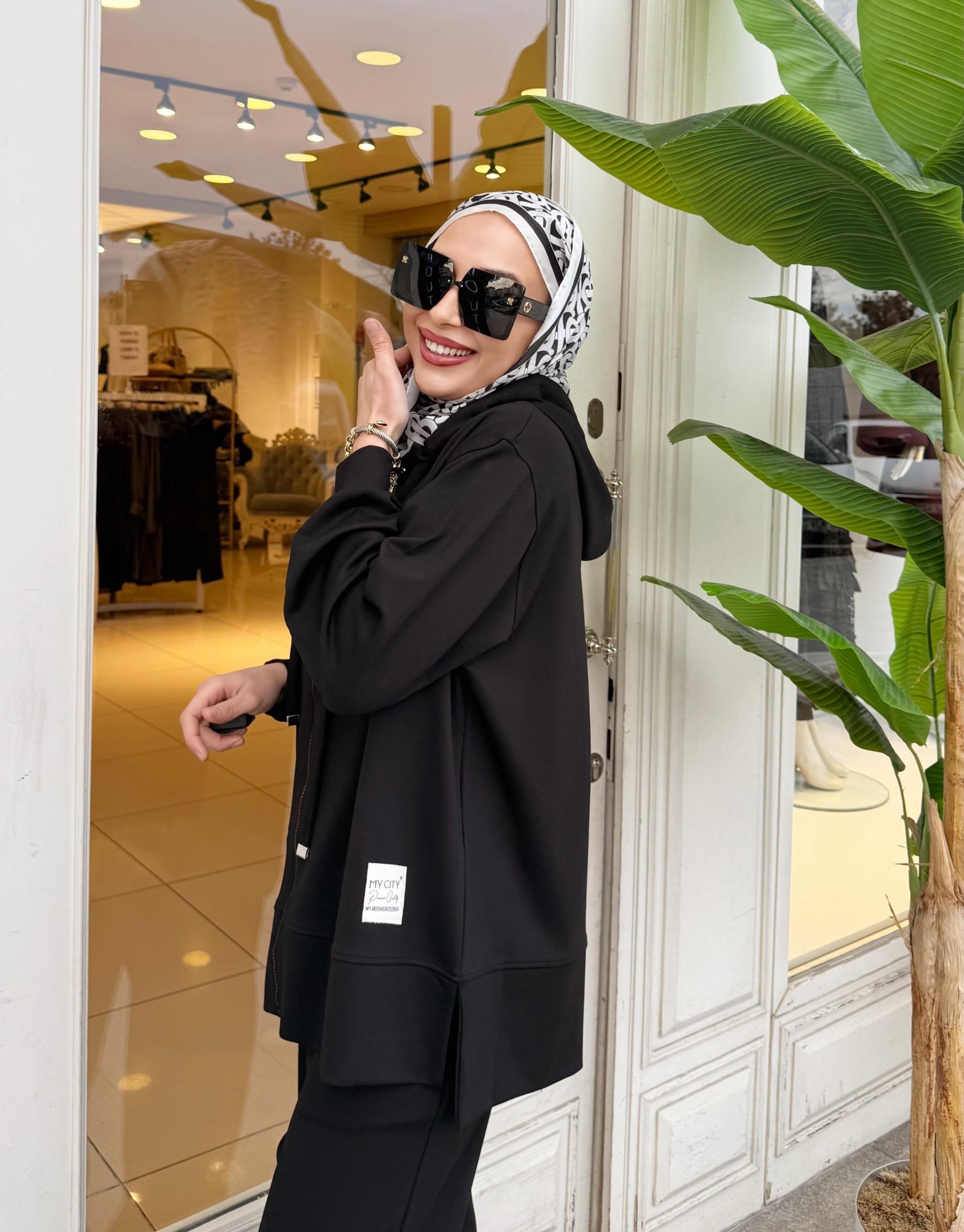 ETİKET DETAY BOMBER TAKIM SİYAH