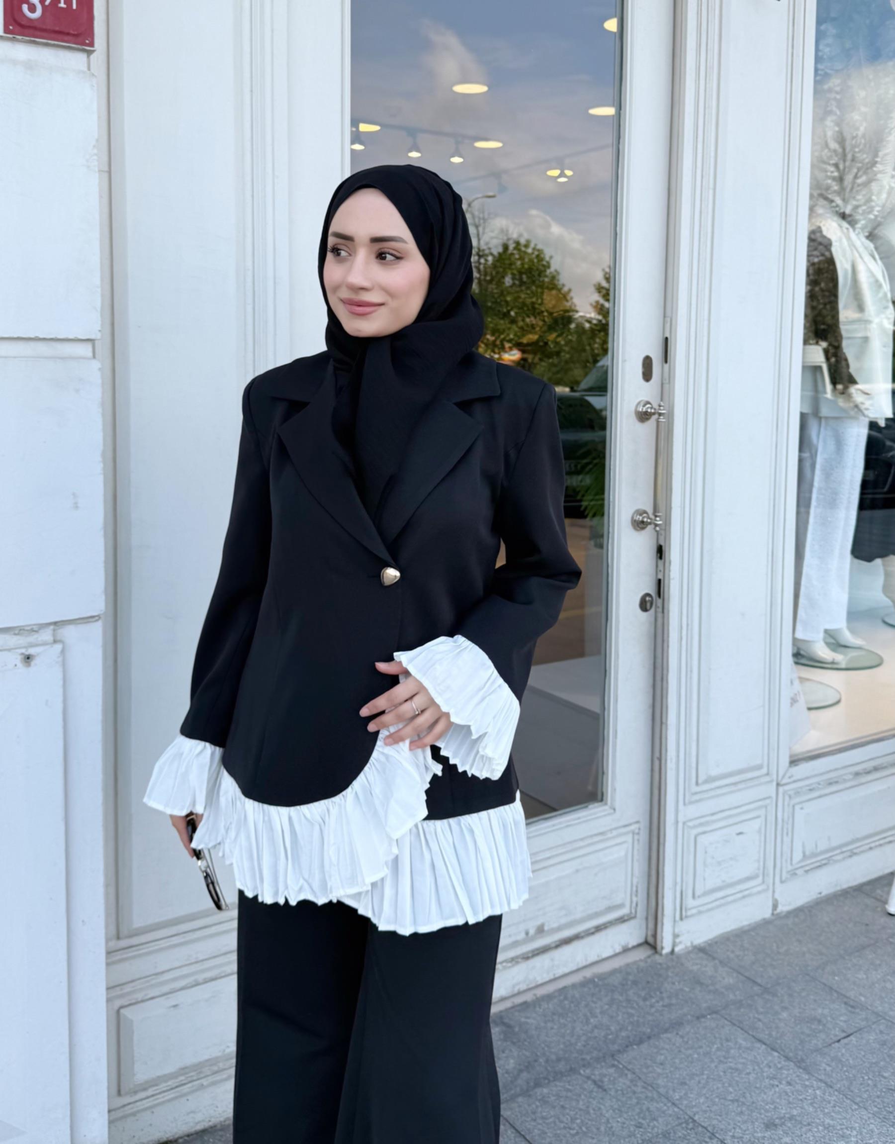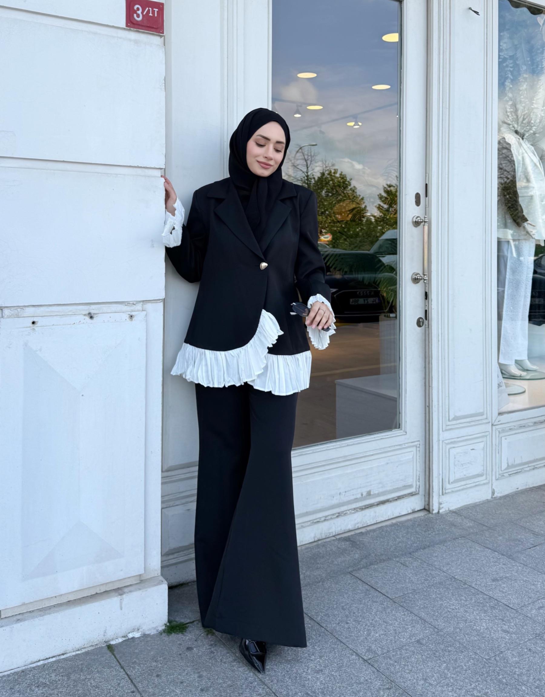 DİK YAKA CEKETLİ TAKIM SİYAH